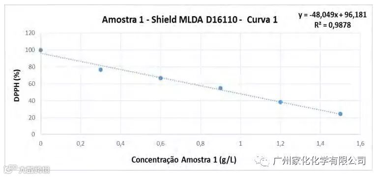 实验表明,1 kg 产品的抗自由基作用相当于9.50 g水溶性维生素E类似物(trolox)