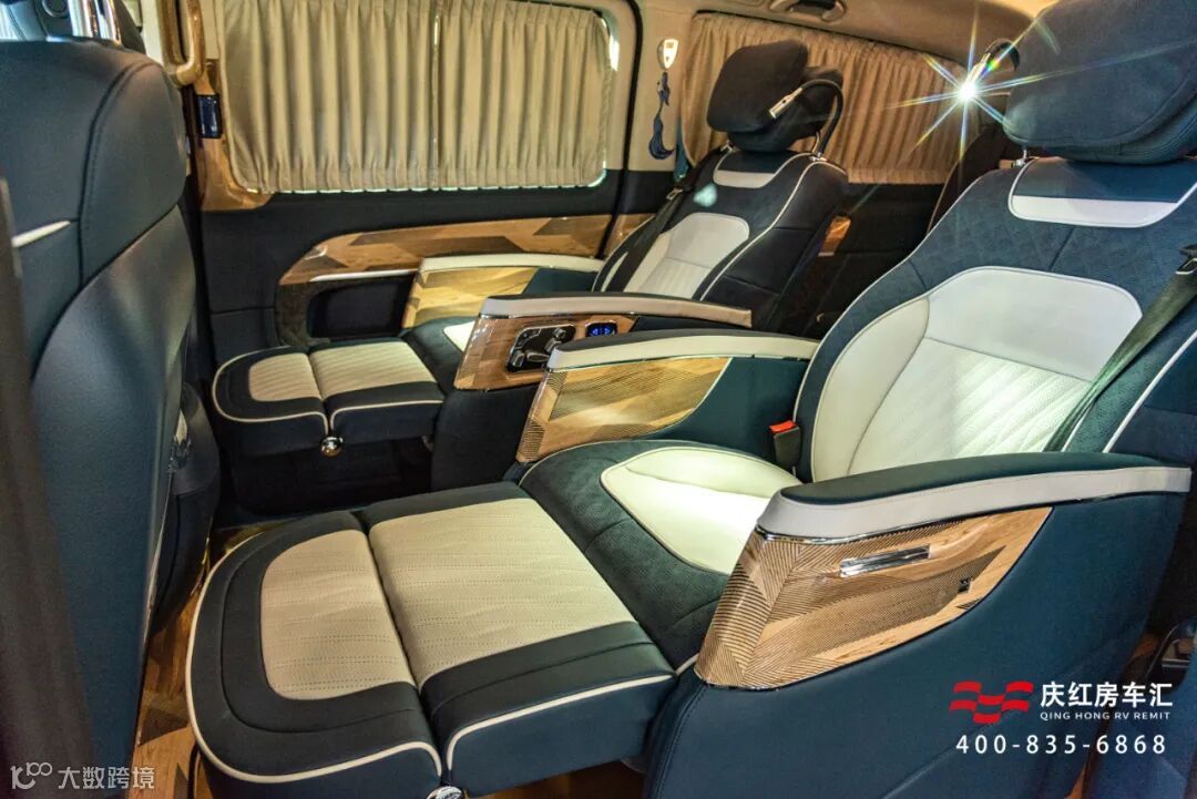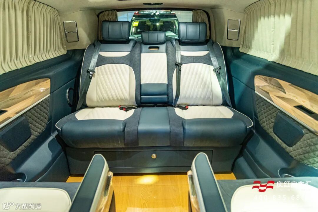 来到奔驰V26L的第三排座椅,座椅的腿部是有支撑的,第三排的客人长时间乘坐,腿部也会有一个很好的支撑,这一点设计相当不错。