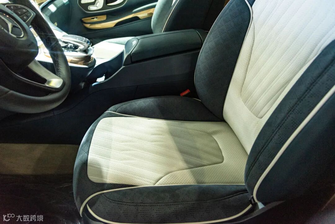 其他车不太一样,比较贴心的一点是这款车的座椅,座椅整体的设计是外部皮质包覆,中间绒质皮料的搭配,里边采用的是NAPPA皮,整体的贴合度更好!