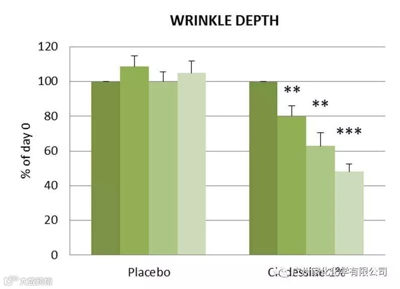 实验表明:克洛蒂欣有减少皱纹的功效(减少量大于50 %)