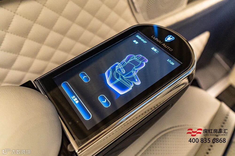 中排两张独立的航空座椅,加热、通风、按摩、腿托伸展、头枕以及前后调节等,功能强大,舒适性足够!而且所有的功能调节,在扶手处的液晶屏就可以控制,相当便捷。