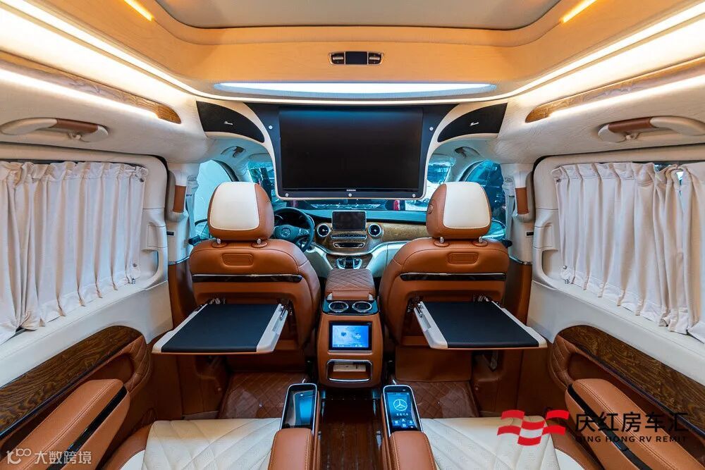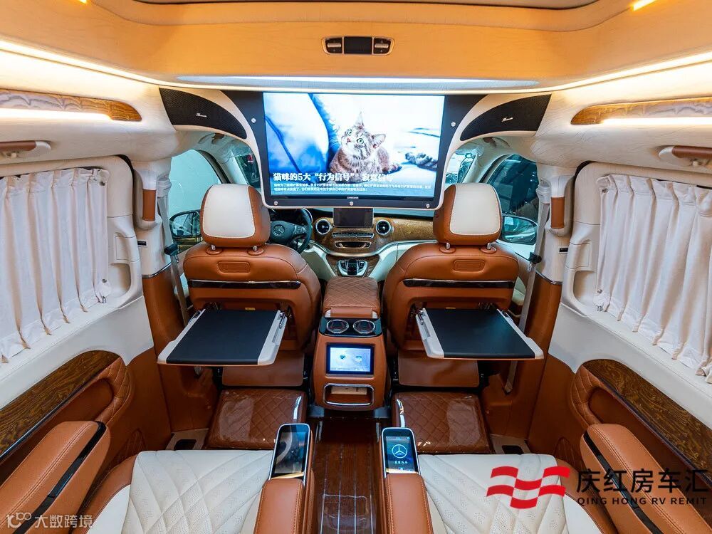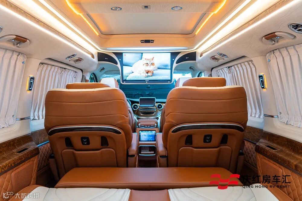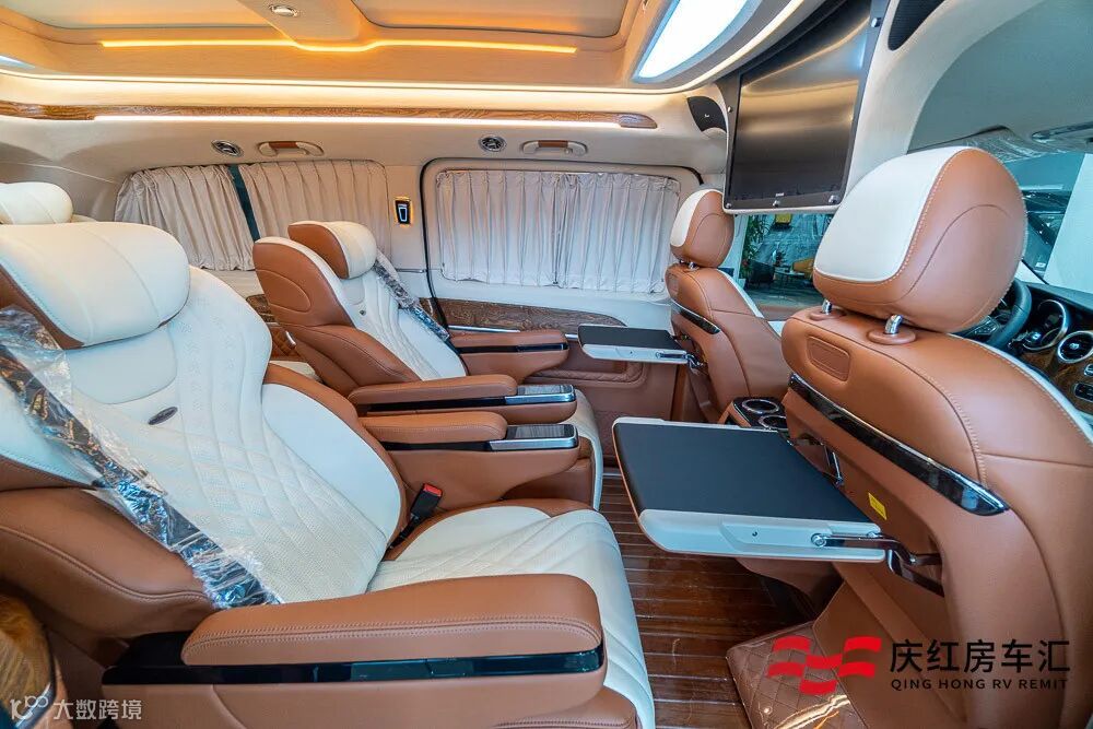 今天要给大家介绍的是一台真正意义上的7座商务车,3430mm轴距,内舱超大超豪华,带有21.5寸高清液晶电视跟环绕音响,中排航空座椅,后排座椅还有腿托的设计,真的是商务车中绝无仅有!它就是奔驰V260L商务车定制版。