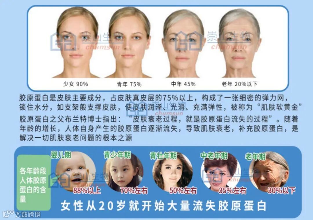 以下是胶原蛋白在美容护肤领域的具体功效论证,相信能使大家更好地理解胶原蛋白。