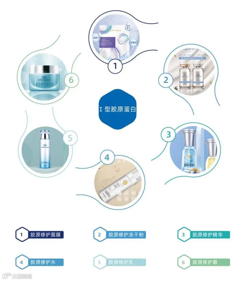 胶原蛋白作为皮肤重要的组成成分,也是一种重要的化妆品原料,具有修复皮肤、保湿、美白、改善皮肤老化的作用。崇山I型胶原蛋白凭借其卓越的修复性、保湿性、亲和性和营养性,已广泛应用于美容护肤领域。