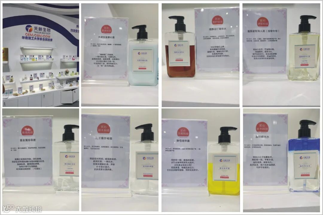 本次美博会,天新生物与华南理工大学共同研发的多款科研新品首度亮相,包括晶钻极光水、重金属排导液、海洋爆炸啫喱、酵母凝萃露,童颜紧致中导液、轻盈雾化霜等,科技含量高,超强体验感,为品牌科技赋能,受到广大品牌商的热捧。彰显了天新强大的科研能力和市场竞争力!