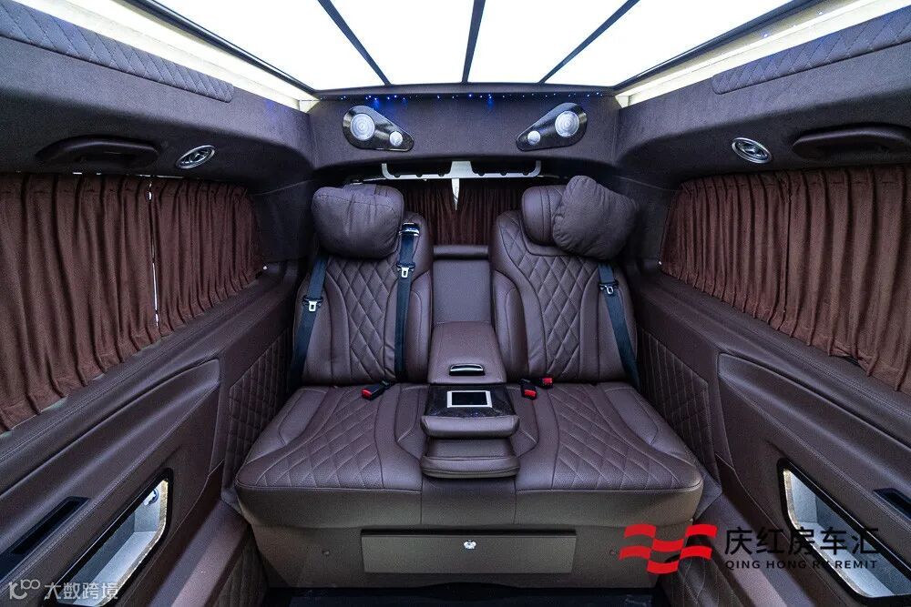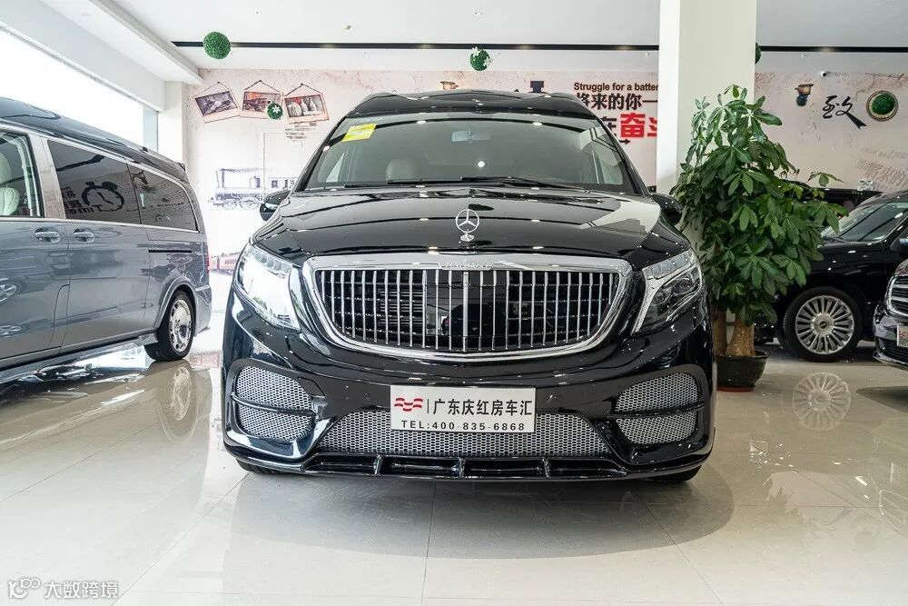 这款威霆改装商务车首先在外观上就特别吸引人,采用了迈巴赫风格的前脸,一改MPV家族式经典的前脸,换成了竖式的进气格栅,镀铬中网,再加上奔驰的立标,高端商务的气质一下就出来了,气场提升至百万。怎么看也不像是三十来万的那个威霆了。