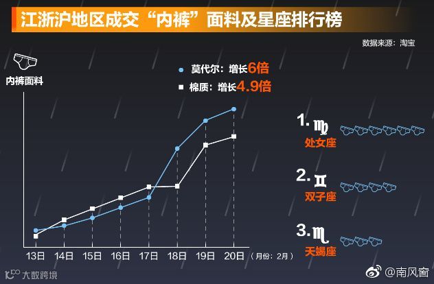 据某宝数据显示:江苏、安徽、湖北、浙江、福建、江西、贵州、广西、广东近一周内男性淘宝内裤增长了5倍……