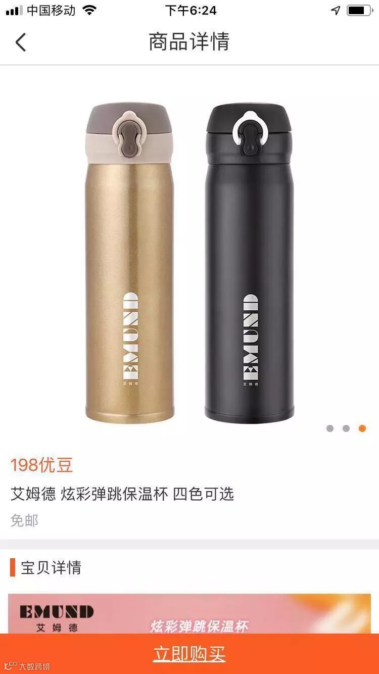 导读:现在,粉丝们仅需198优豆即可全优豆换购这款温暖贴心的保温杯啦!数量有限,先到先得哦!(淘宝参考价RMB:2