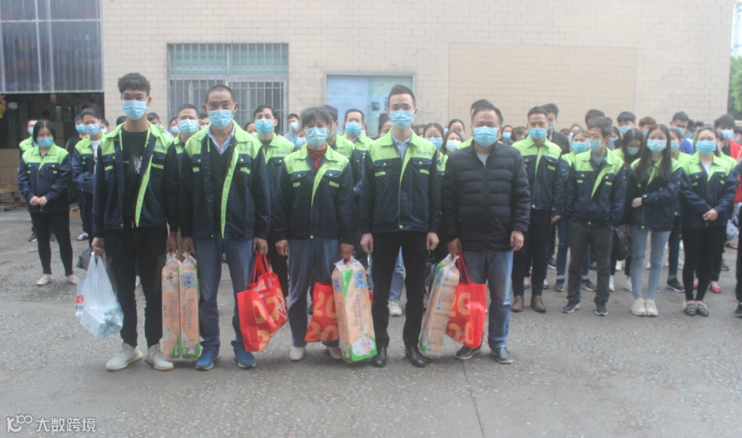 为返粤14天后的湖北籍贯员工发放防疫物质,包括口罩、 消毒液、防疫手册、纸巾等,够温馨。