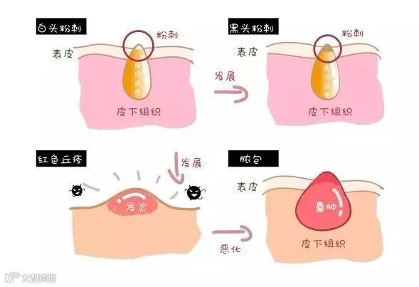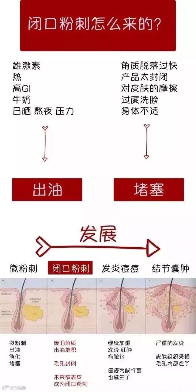 闭口、粉刺、痘痘三者的关系