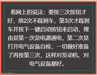 如果不是网络这么发达,相信绝大多数人都不知道还能这样玩,都是直接踩刹车按启动按钮走人的,你也没怎么听说过因为这样启动而导致车子出什么问题吧,何必操着汽车设计师/工程师的心来使用车子呢,累不累啊!