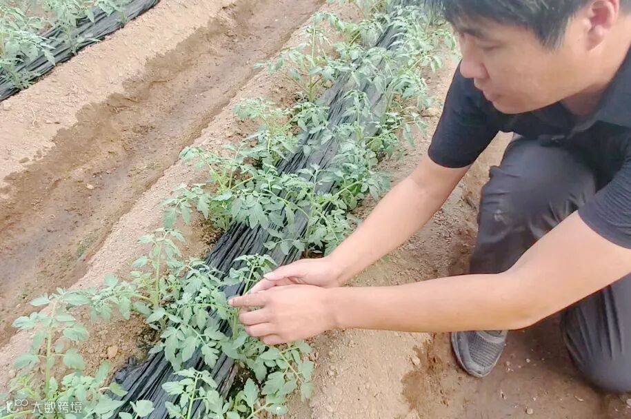 8月12日,菜农郑大叔在自己种植的西红柿一部分地上试用微新生物上品肥No.88(简称上品肥)作为底肥。