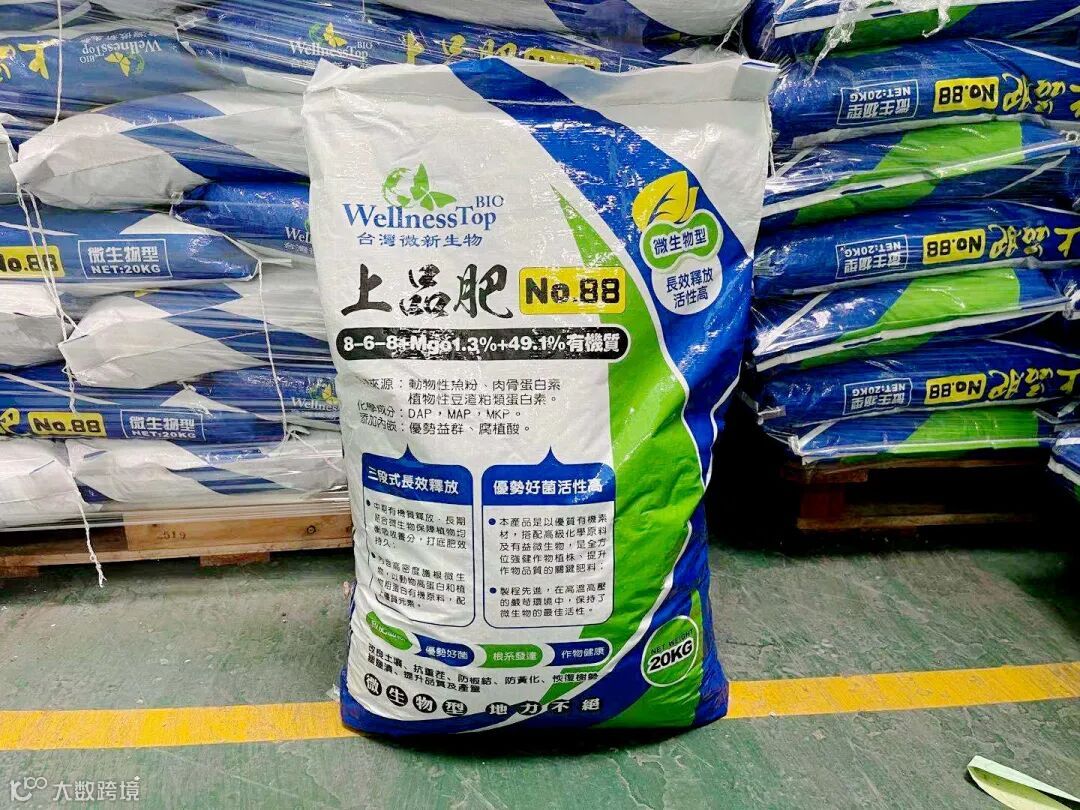 上品肥是从台湾原厂原装进口产品,进口合同号:21CT11XP237GWX711,是一款有机无机微生物肥料。