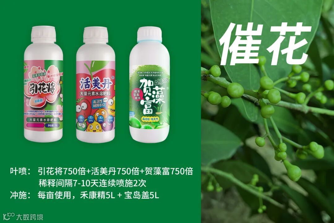 催花方案:叶喷:引花将750倍+活美丹750倍+贺藻富750倍稀释间隔7-10天,连续喷施2次
