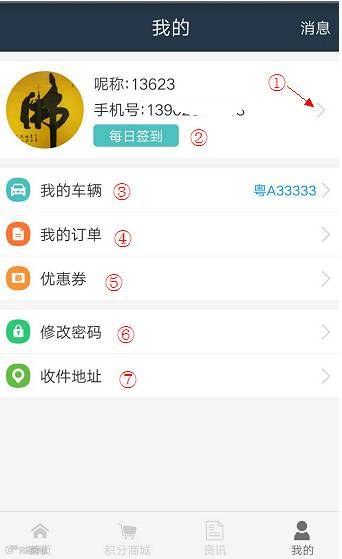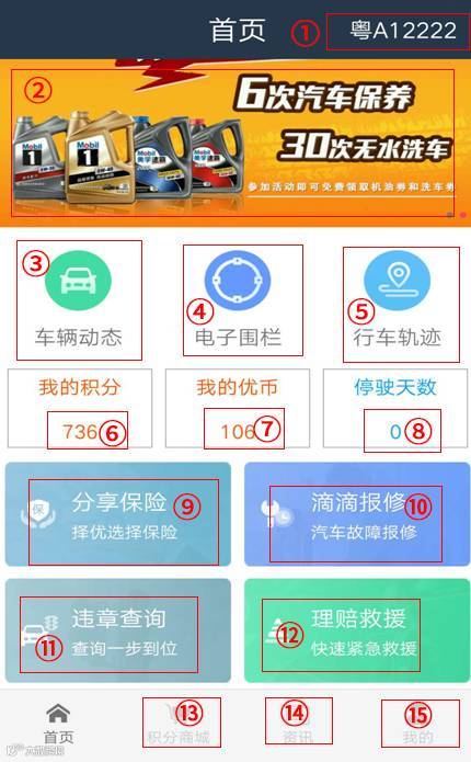 6) 我的积分:平台通过多种方式奖励给予车主所得;