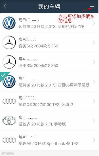 1) 添加车辆:为车主用户绑定的车辆车牌号,可点击切换其他车辆或新增车辆;