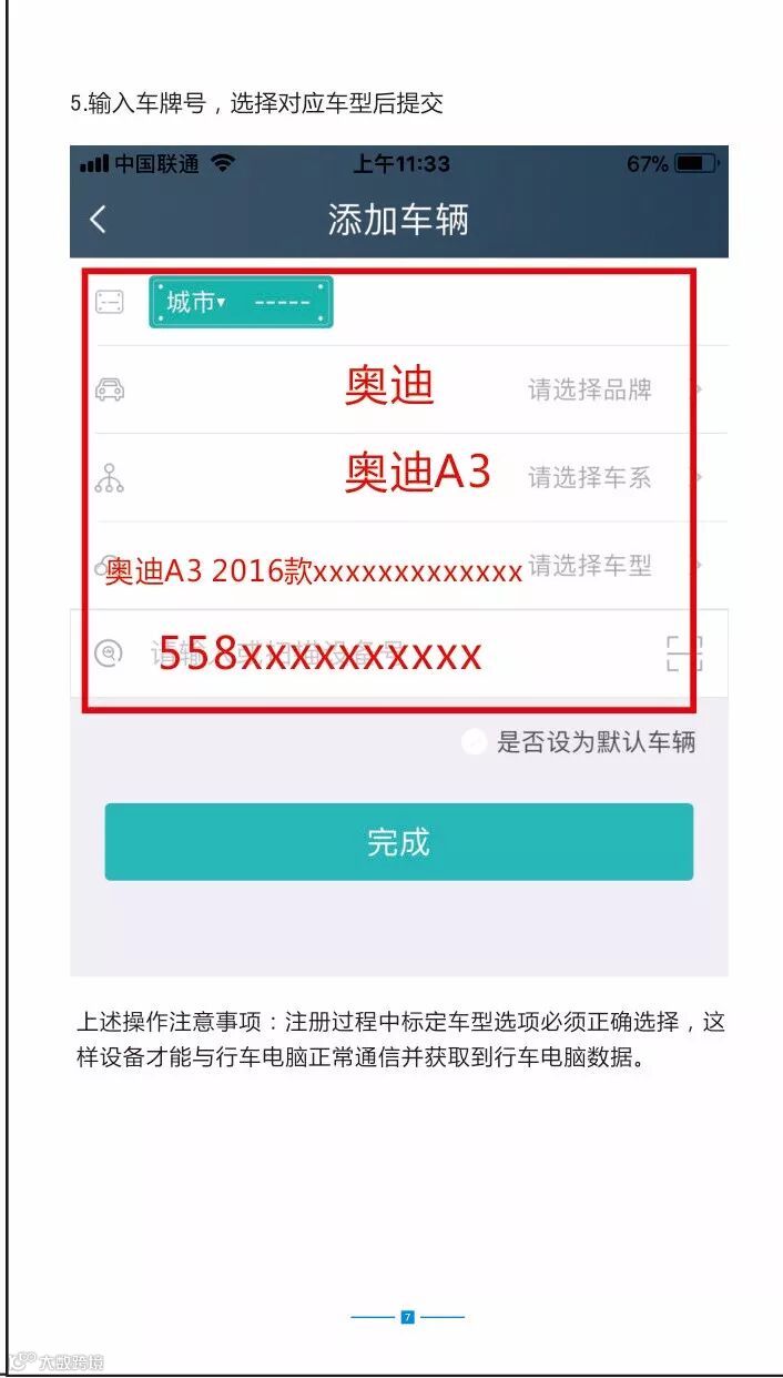 5) OBD设备号:分享车联网提供的OBD,条码下方数字;