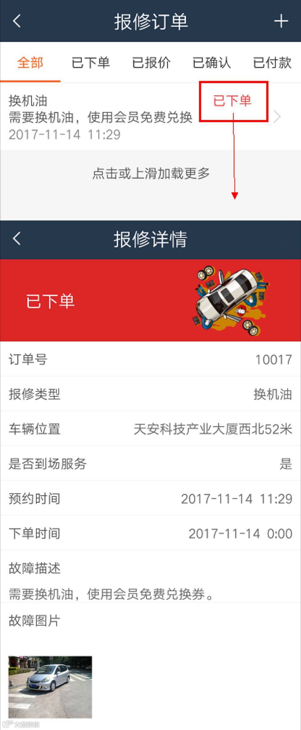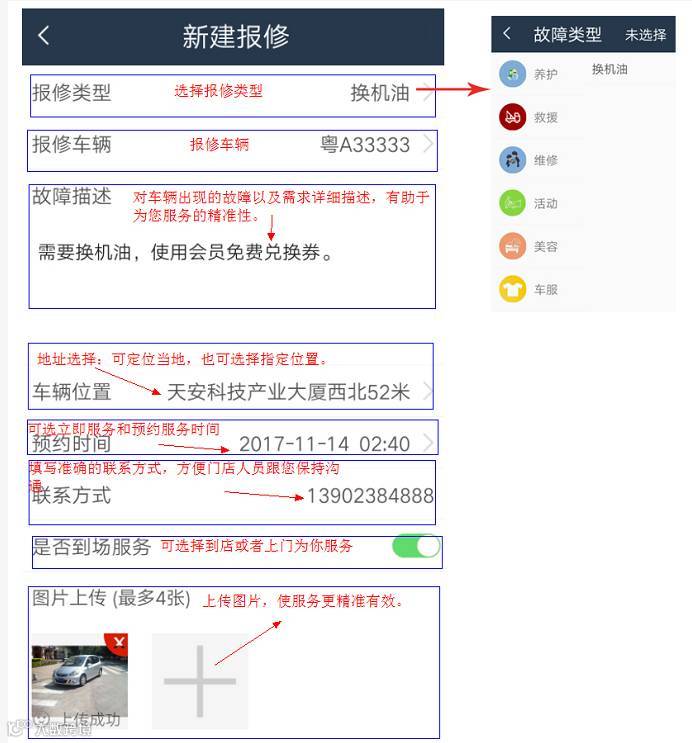 10) 滴滴报修:当车辆发生故障,或者需要预约保养洗车等需求,可通过滴滴报修下单,附近15KM范围内分享车联网合作门店接单,提供便捷;