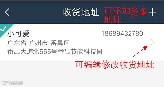 7) 收件地址:可添加多个收货地址,也可以对这些地址进行编辑修改