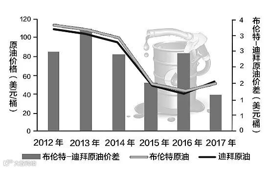 2017年,国际油价较上年上涨,市场朝着再平衡方向发展,但全球石油库存仍显著高于5年平均,市场平衡较脆弱。预计2018年布伦特原油年均价为60美元/桶至65美元/桶,波动范围为50美元/桶至75美元/桶。