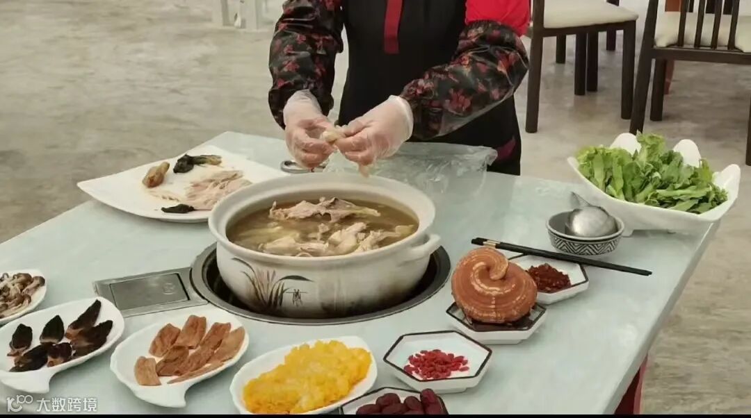 您享用的蘑菇都是我们现场采摘,再配上我们特制的菌汤鸡,简直就是美食届的绝绝子;白盛翠花养生菌汤鸡,是我们采用上等的灵芝酒调味,整鸡内放入灵芝片经4小时小火慢炖,使灵芝的营养完全浸入,可更好的达到增强免疫力,防止衰老,补益肝肾,健脾安神的作用。