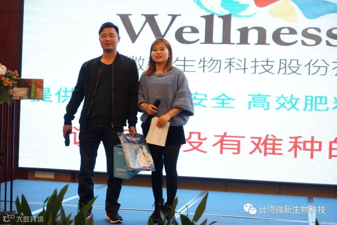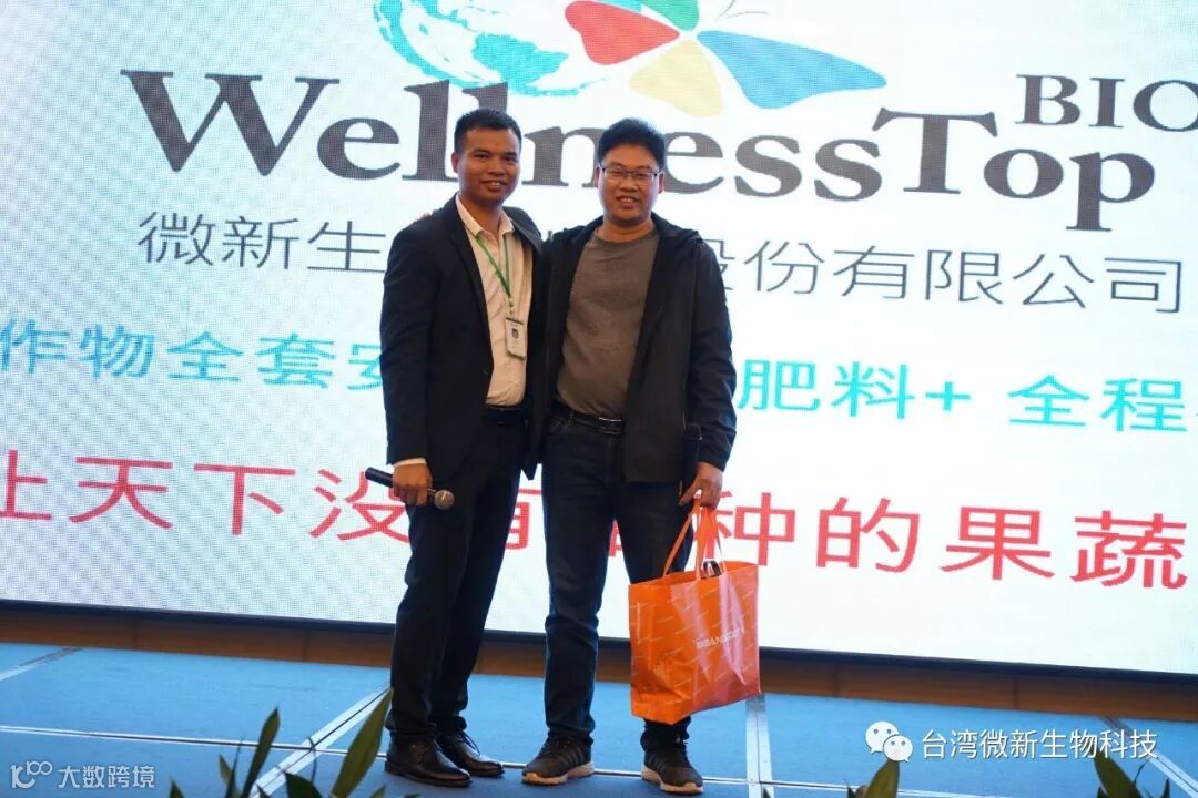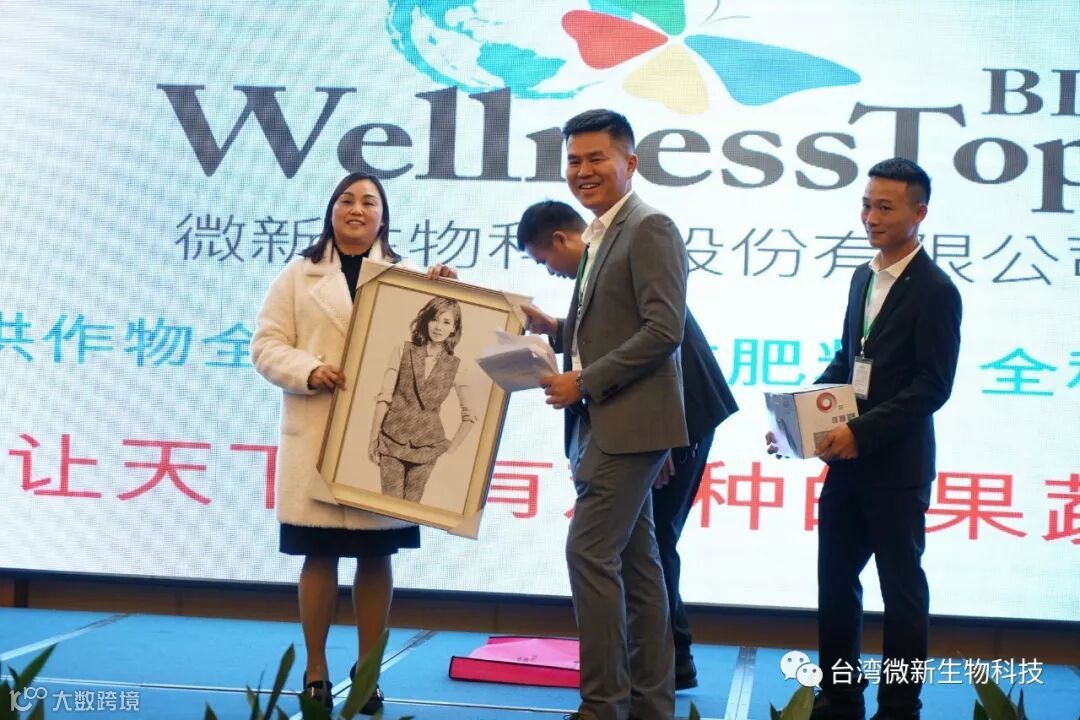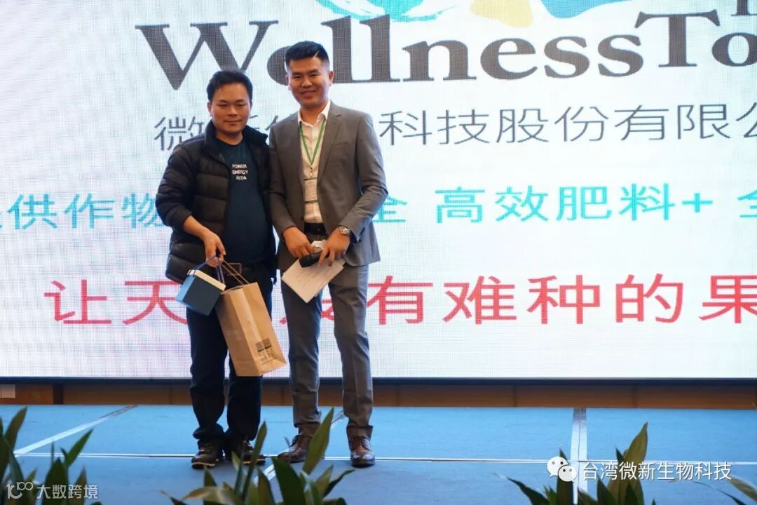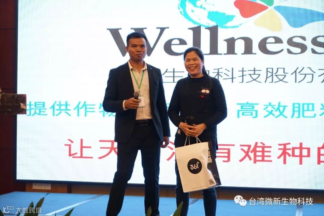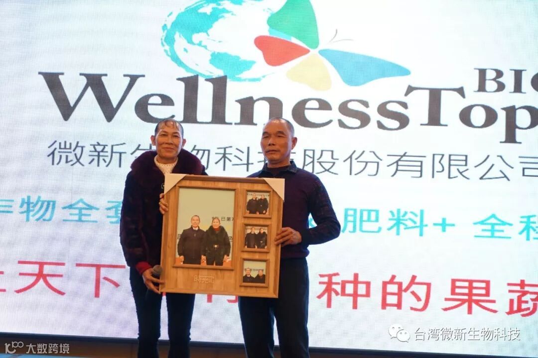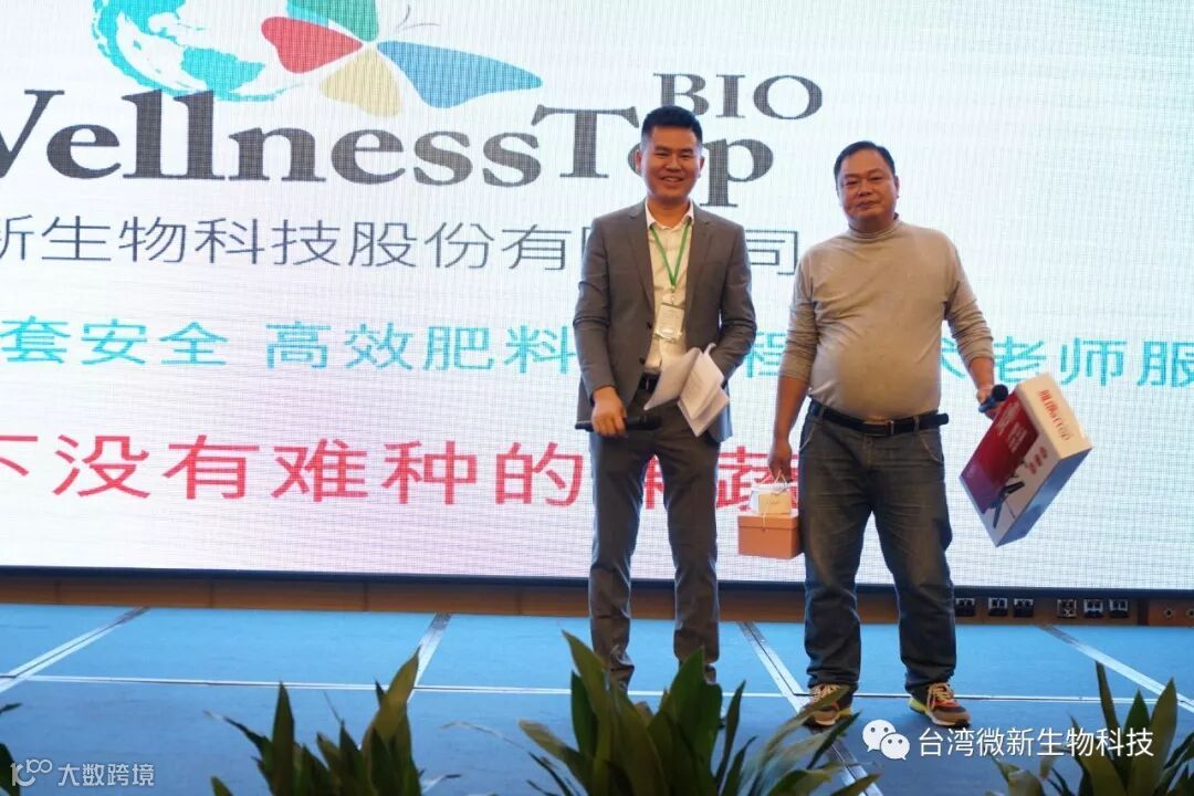 潘老师的感言;我非常的感谢廖涌杰夫妇,对微新生物的支持,他们是我在象州下乡开发市场的第一个客户,打造出来的第一个观摩园,每天在气温高达37~38℃环境下做示范实验,我一吃饱中午饭我就拉廖老板下乡,他都向王总诉苦说:“你的潘总都不给我小眯一会儿就要拉我下乡去了”。廖老板的鞋都被我磨烂了几双,人晒成了别人眼里“你是烧炭的还是出瑶,他的客户都亲切的称呼他为“廖黑子”了,有一次刚下完大雨我们下乡去陆来丰的果园。车差不多到果园时陷进了泥坑,我想一脚油门冲出来,却磨破了轮胎,轮子都漏气完了,当你看到我的一脸的沮丧,你对我说,潘总不急这个我来弄,在这个烂泥坑里,你三下两下就把车轮换好,还有很多让我很感动的事迹太多了,让我今天在台上不叙说太多,你看巫蒙燕女士从一个只是从只坐店的老娘,来了一个人生的180度大转弯变成了早出晚归,风里来雨里去的为果农把关守护的植物医生,借这次机会向廖涌杰先生跟巫蒙燕女士深深的表达我的欠意。