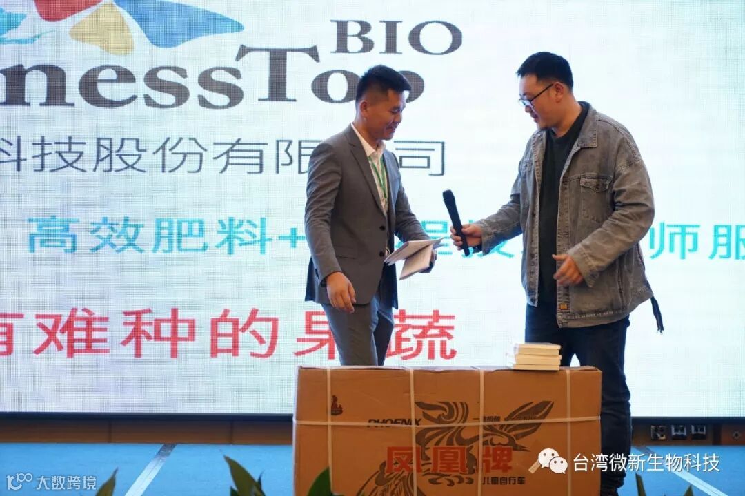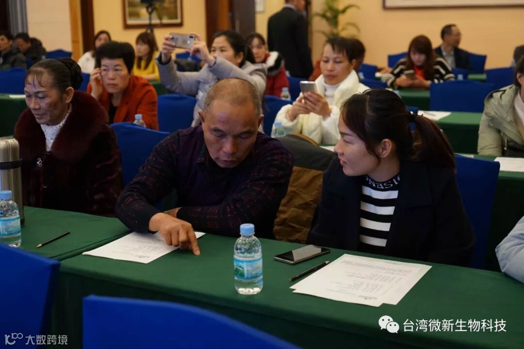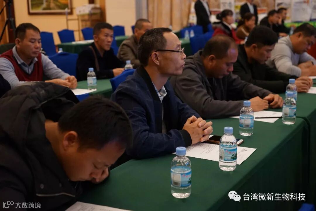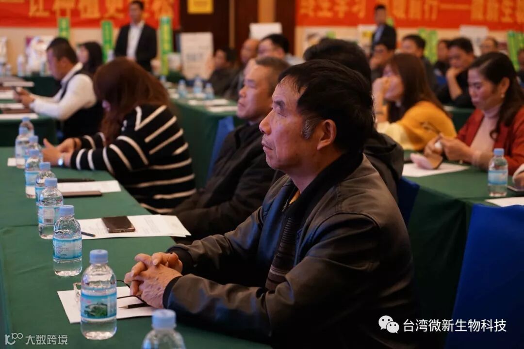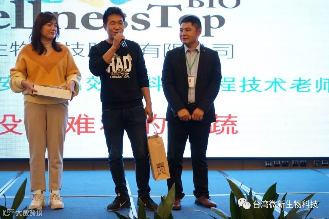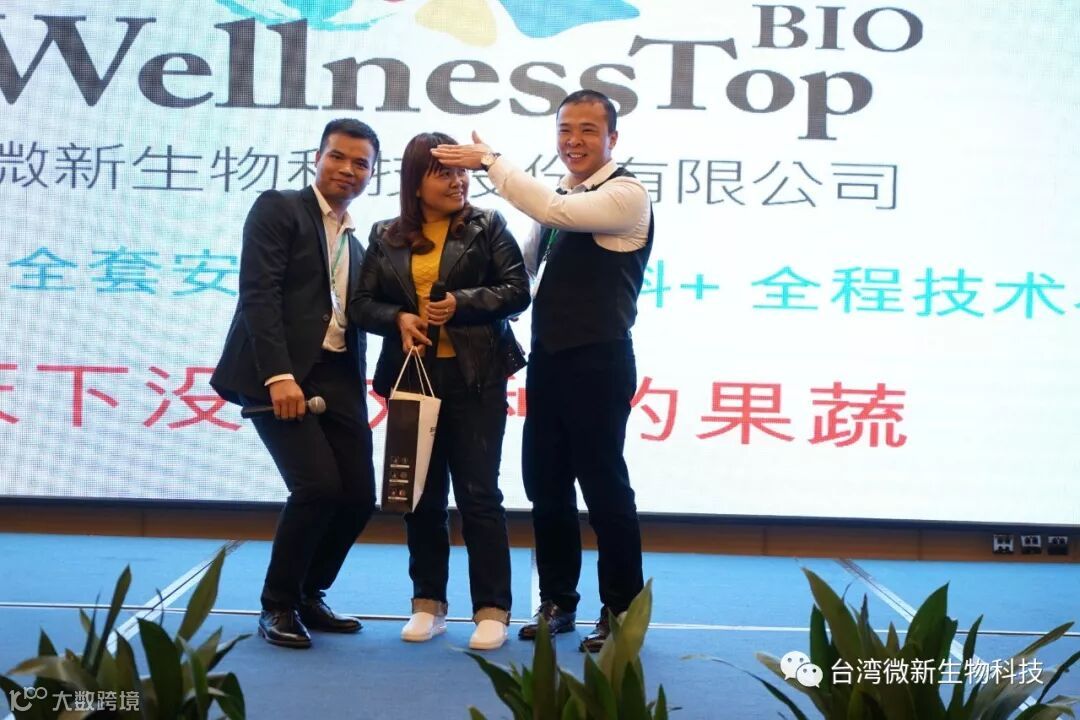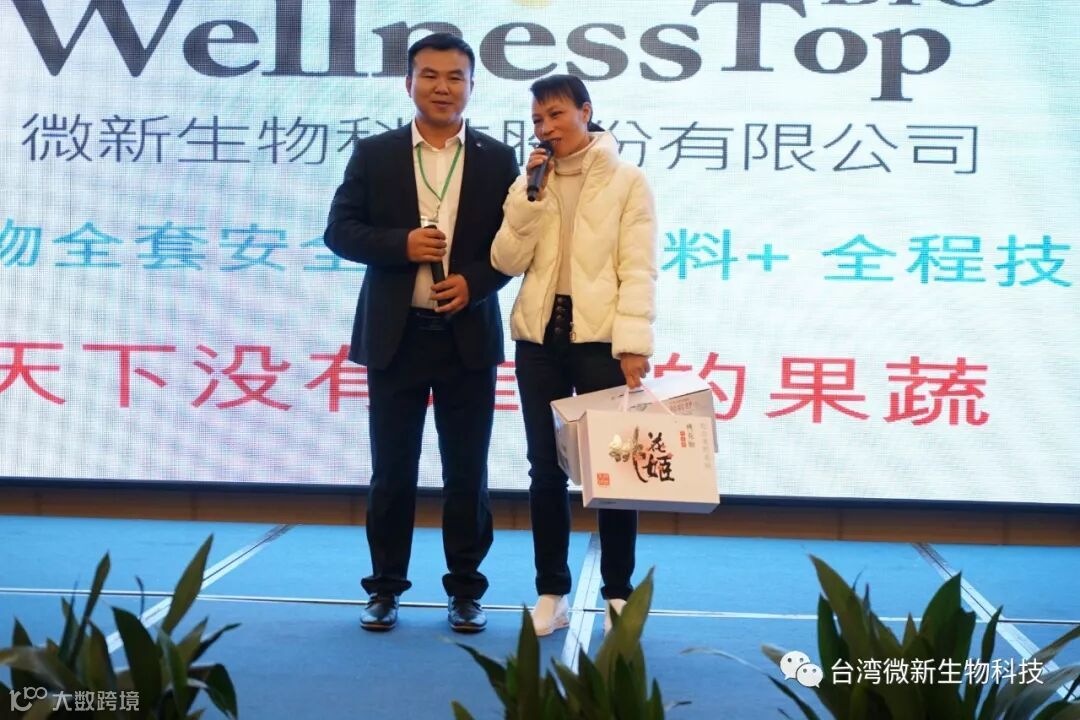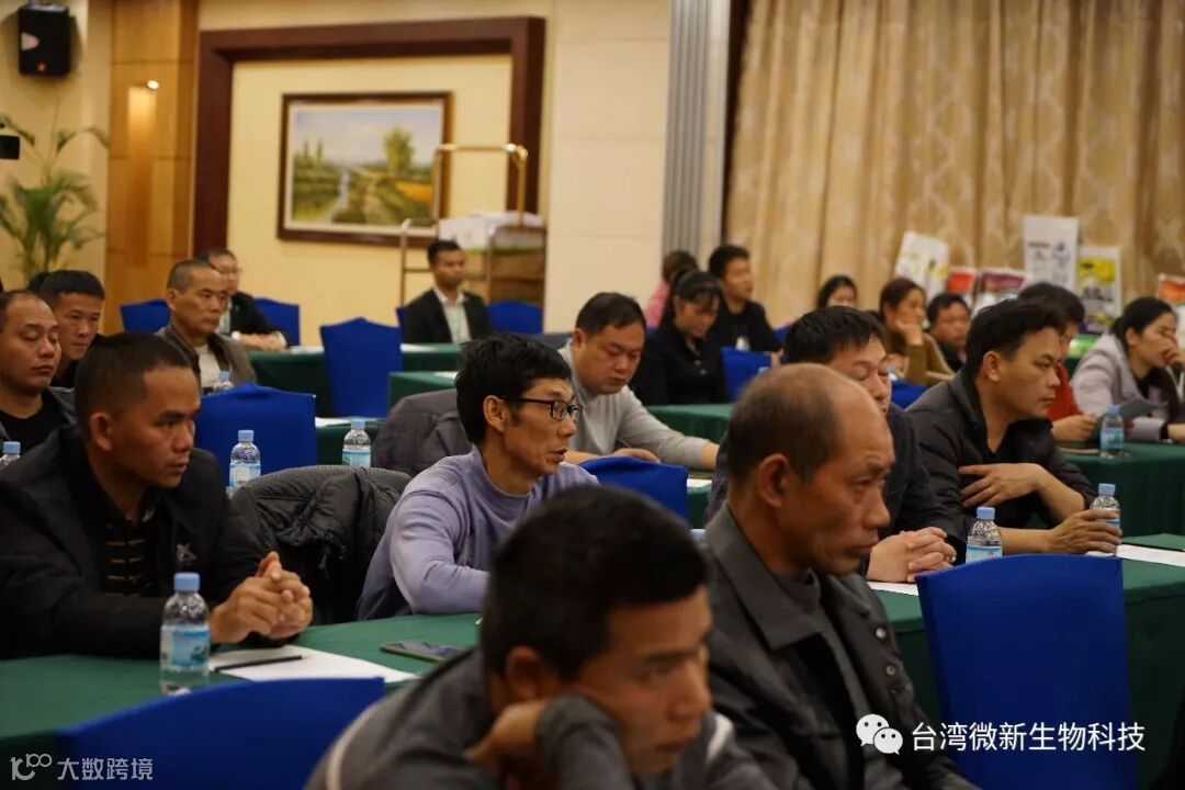 潘老师的感言;我非常的感谢廖涌杰夫妇,对微新生物的支持,他们是我在象州下乡开发市场的第一个客户,打造出来的第一个观摩园,每天在气温高达37~38℃环境下做示范实验,我一吃饱中午饭我就拉廖老板下乡,他都向王总诉苦说:“你的潘总都不给我小眯一会儿就要拉我下乡去了”。廖老板的鞋都被我磨烂了几双,人晒成了别人眼里“你是烧炭的还是出瑶,他的客户都亲切的称呼他为“廖黑子”了,有一次刚下完大雨我们下乡去陆来丰的果园。车差不多到果园时陷进了泥坑,我想一脚油门冲出来,却磨破了轮胎,轮子都漏气完了,当你看到我的一脸的沮丧,你对我说,潘总不急这个我来弄,在这个烂泥坑里,你三下两下就把车轮换好,还有很多让我很感动的事迹太多了,让我今天在台上不叙说太多,你看巫蒙燕女士从一个只是从只坐店的老娘,来了一个人生的180度大转弯变成了早出晚归,风里来雨里去的为果农把关守护的植物医生,借这次机会向廖涌杰先生跟巫蒙燕女士深深的表达我的欠意。