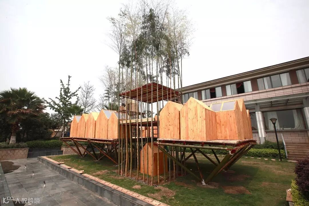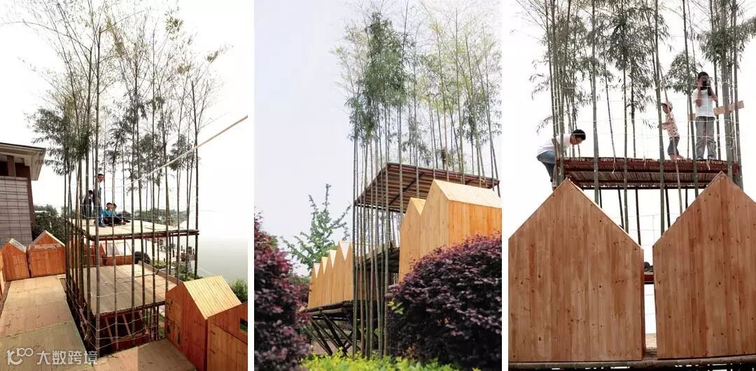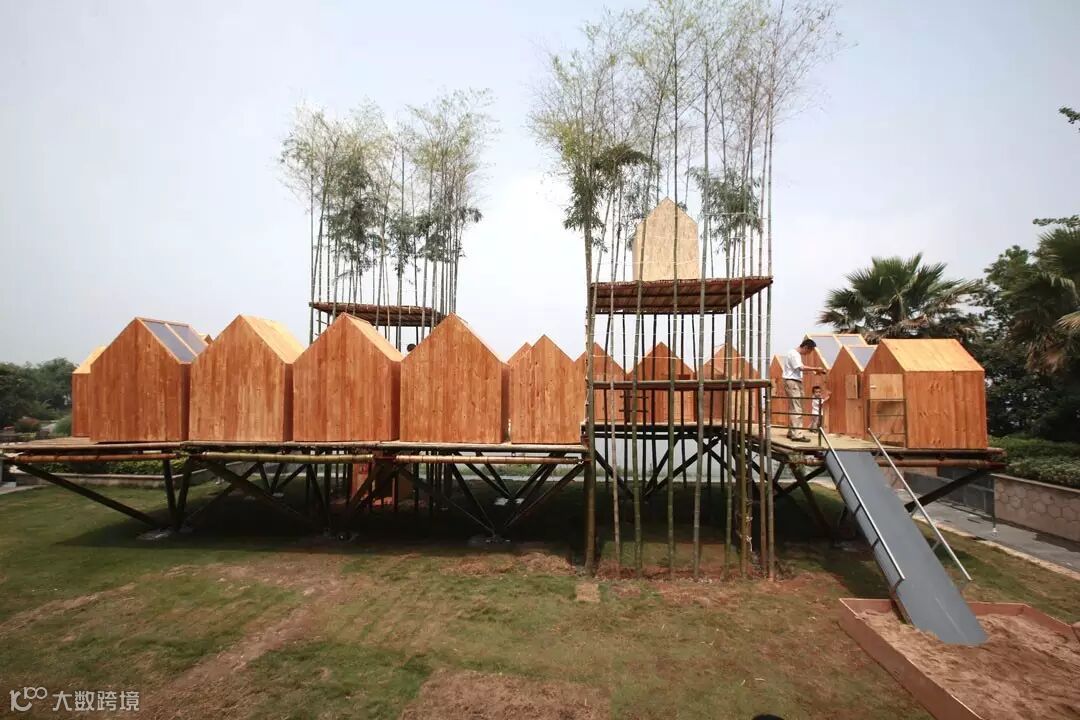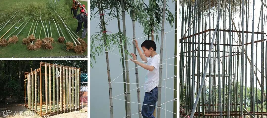 先进建筑实验室和一个儿童自然教育机构合作,39个5-12岁的孩子是设计和建造的主体。项目历时三个月,周末工作营和建造。尝试了原竹建筑的预制体系,用2平米的基础面积支撑起90平米的空间,其中还有两个竹塔楼,是用原竹移栽的,会随着时间生长。