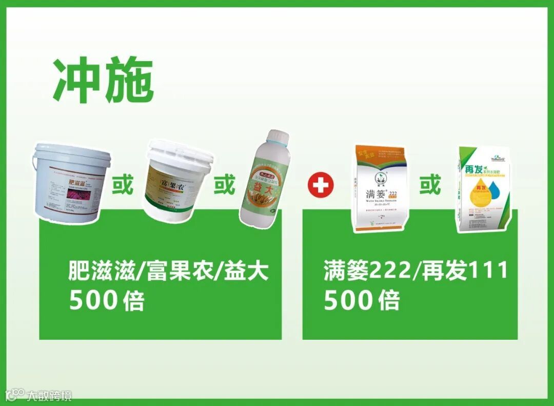 冲施:肥滋滋/富果农/益大500倍+满篓222/再发111(500倍)