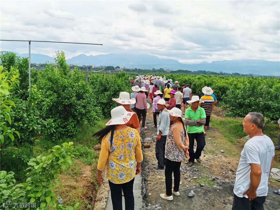 本次观摩会由微新生物中平客户黄文焕老板和公司杨宽凤老师牵头组织。我们还请来了中平镇农业技术推广站的陈站长。此次观摩会规模盛大,仅现场签到的果农就达到了100人。