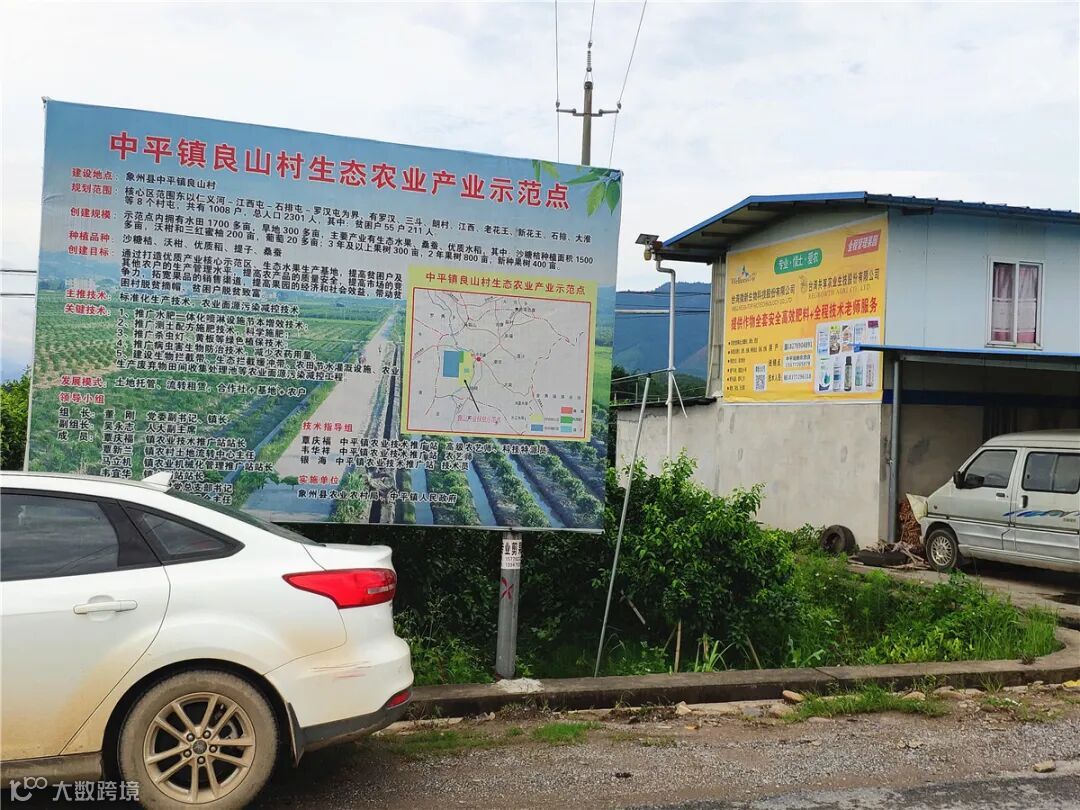 潘老板的砂糖橘果园就在象州中平镇中平街(613县道)路边,交通非常方便,果园也很好找。在几百米远的距离,就能看到路边一栋两层的房子,两侧墙面写有微新生物/台湾共享“全程管理果园”的字样,旁边还立有一个“中平镇良山村生态农业产业示范点”的牌子。