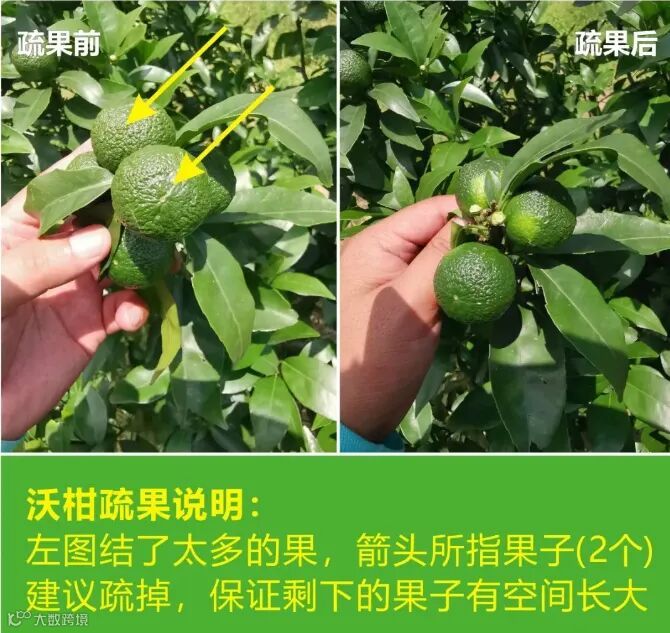 我们知道,沃柑是要疏果的。但是很多果农除了病果、花果、裂果、废果、畸形果外,其他果子——比如小果或挤在一起的果子——不舍得疏掉。这样做就得不偿失了。