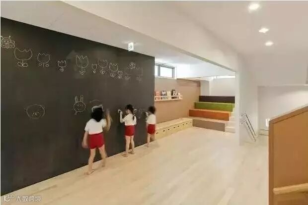幼儿园还设有许多矮台阶可以攀爬,按照设计师的话来说,这种设计是为了“增强孩子们的触感,改变心情”。