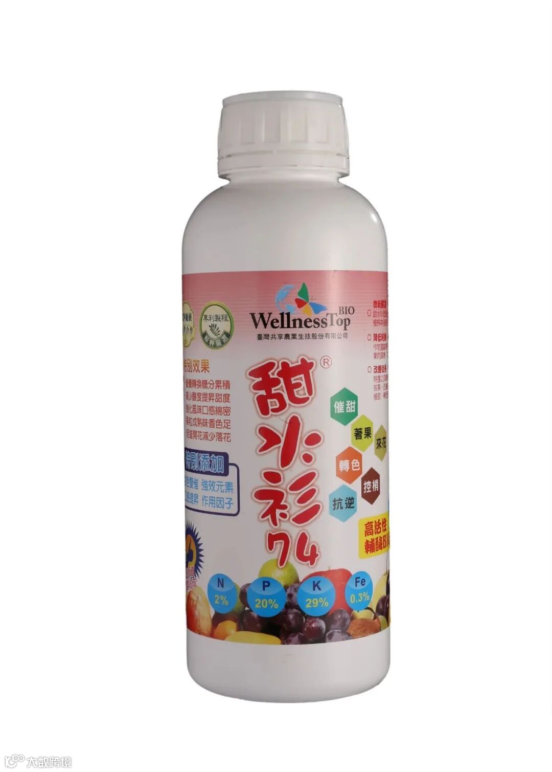 甜水衫成分为:水溶性磷酐20%;水溶性氧化钾29%;铁3%;特添加高活性BIO; 溶磷菌等。属于高磷高钾型液体肥。