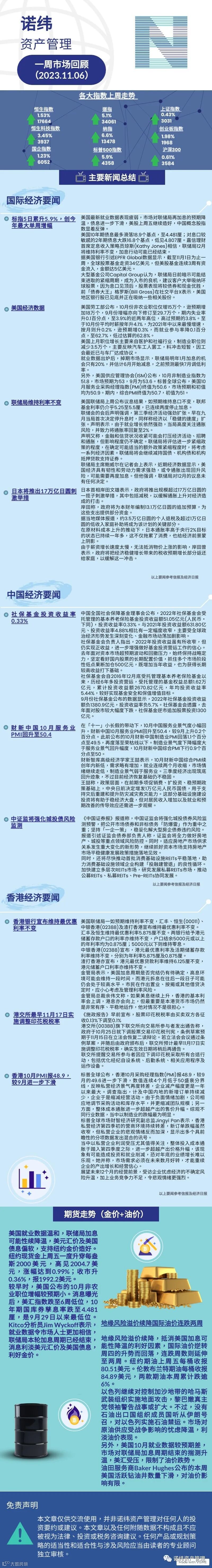 诺纬一周市场回顾(2023.11.06) 诺纬资产管理