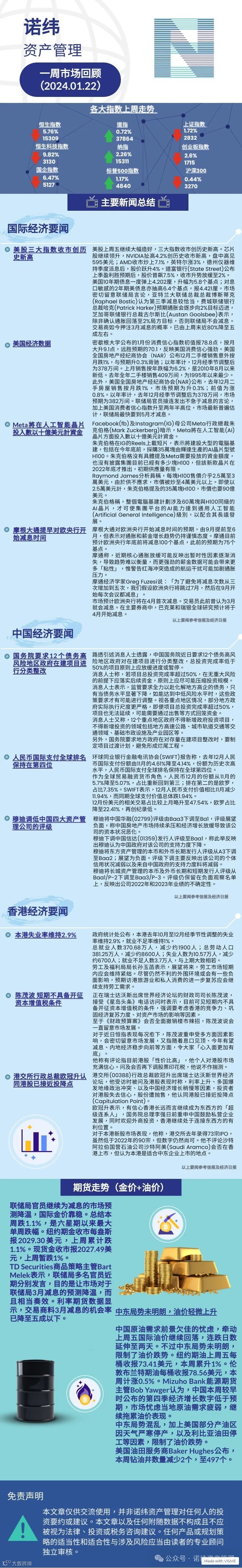 诺纬一周市场回顾(2024.01.22) 诺纬资产管理