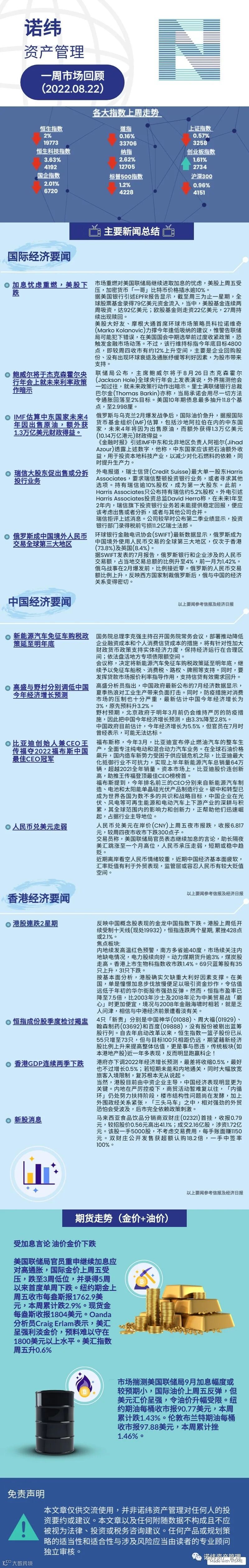 诺纬一周市场回顾(2022.08.22) 诺纬资产管理