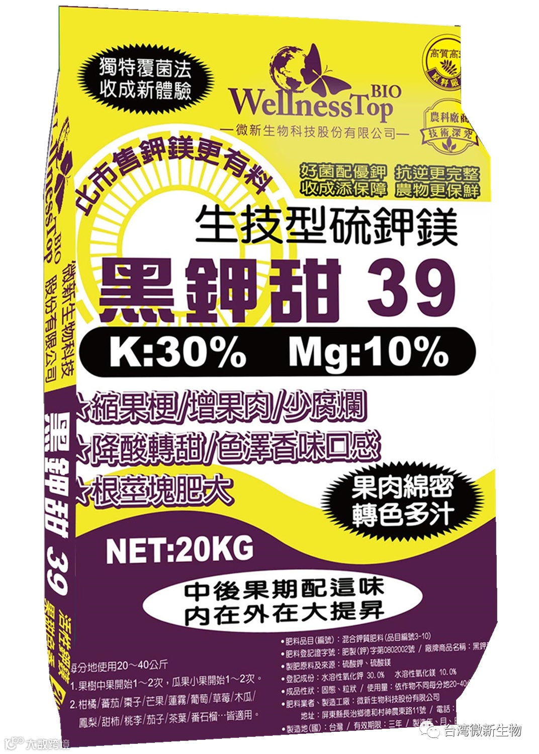 3. 下雨后,及时施用微力钾38或黑钾甜39,让果子快速膨大。