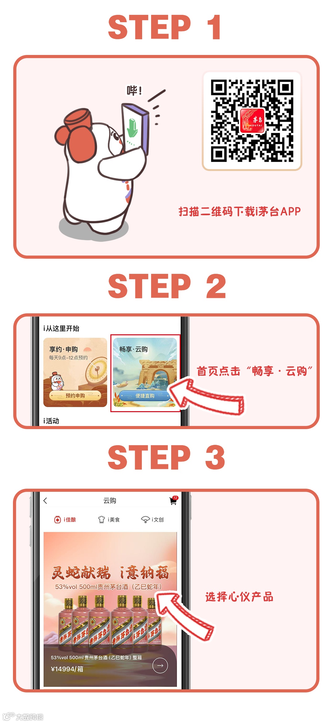 为了让您的纪念需求能更好的被满足,小茅特别推出了数字化增值服务,10月20日起,亲们在i茅台APP“畅享·云购”商城购买整箱53%vol 500ml贵州茅台酒(乙巳蛇年),可选择您心仪的生产日期,无需预约抽签,可直接选购,数量有限,先到先得哟!