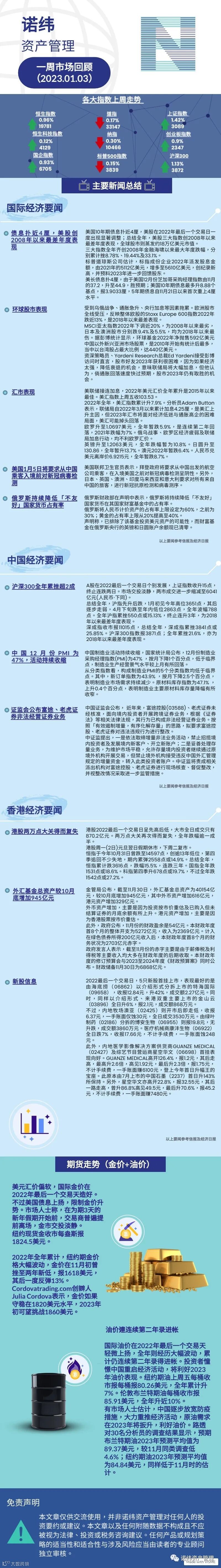 2023年新年快乐                                          诺纬一周市场回顾 诺纬资产管理