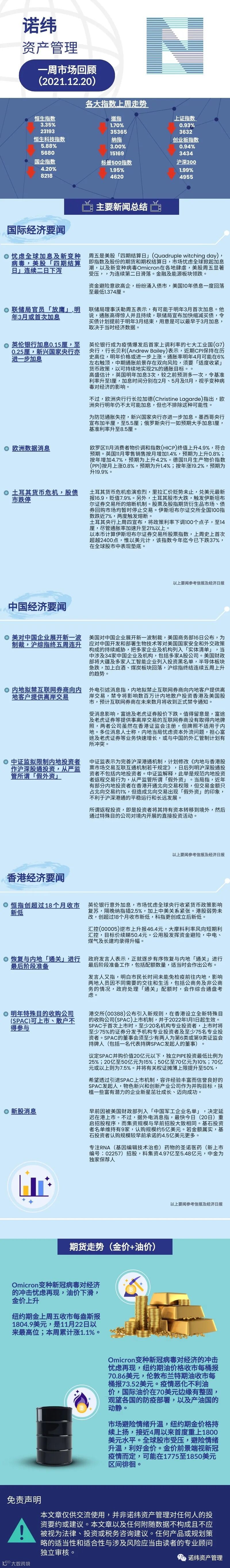 诺纬一周市场回顾(2021.12.20) 诺纬资产管理