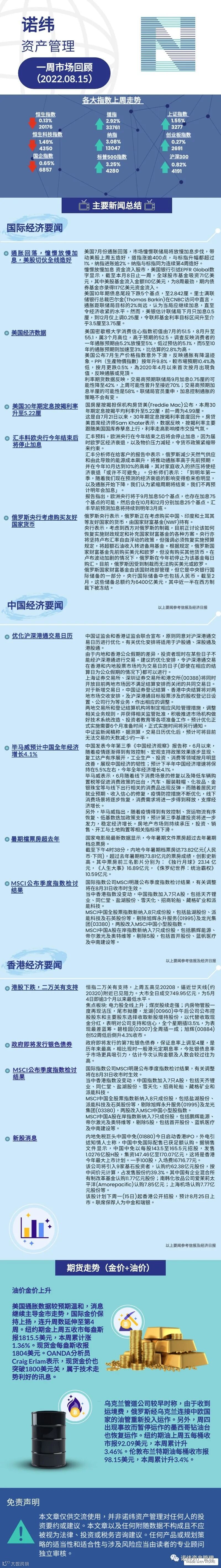 诺纬一周市场回顾(2022.08.15) 诺纬资产管理