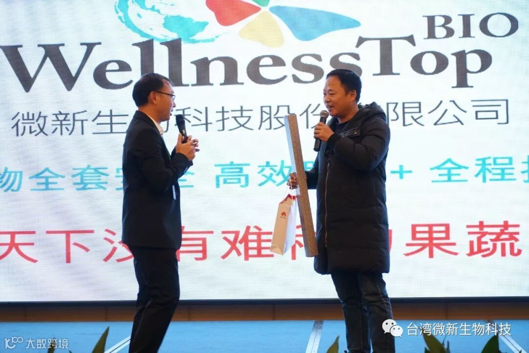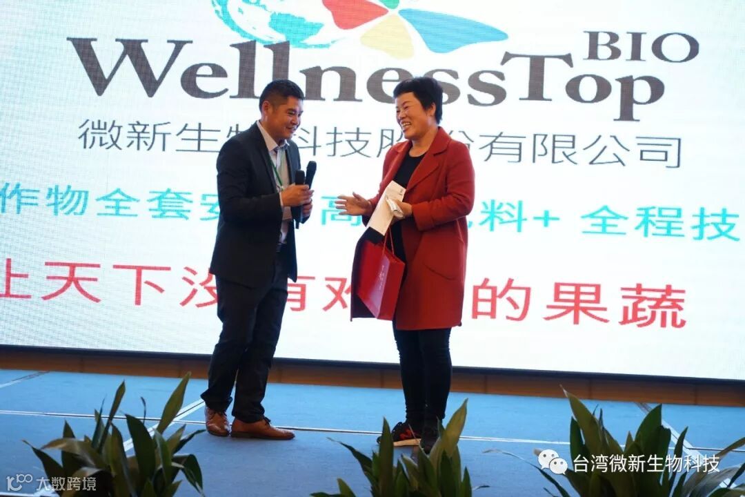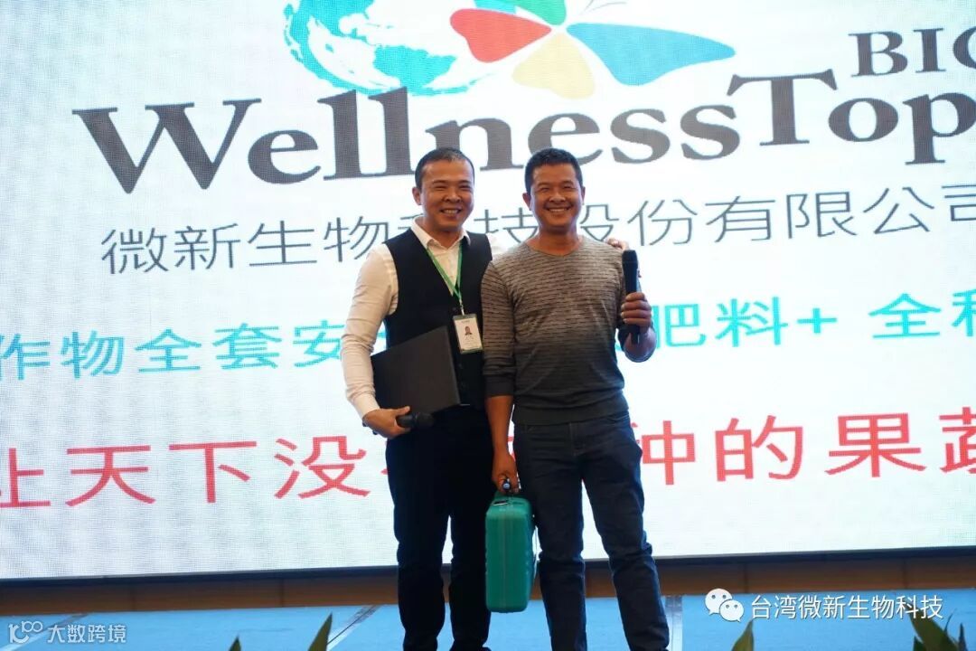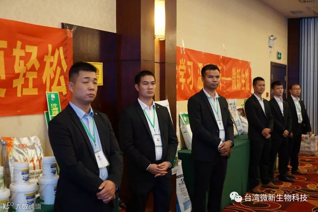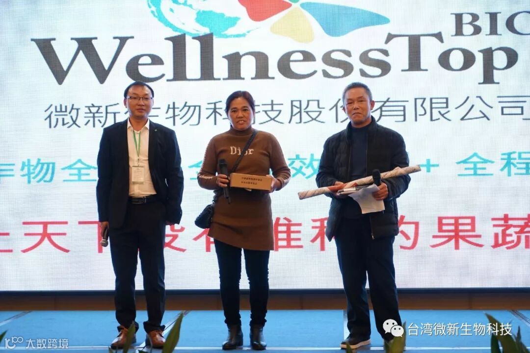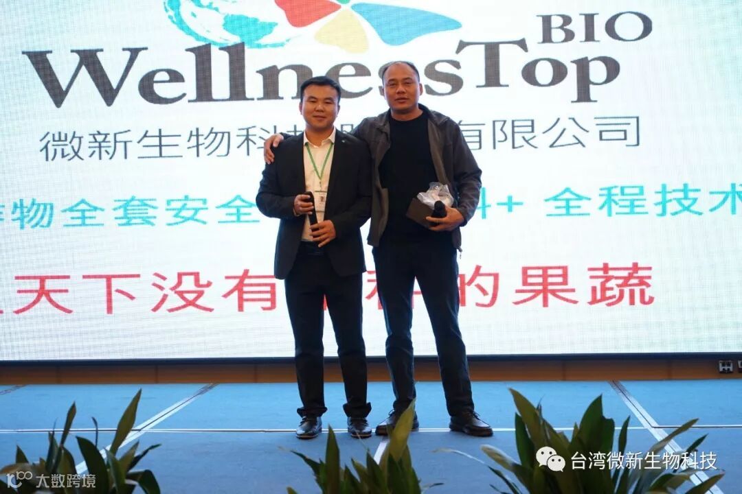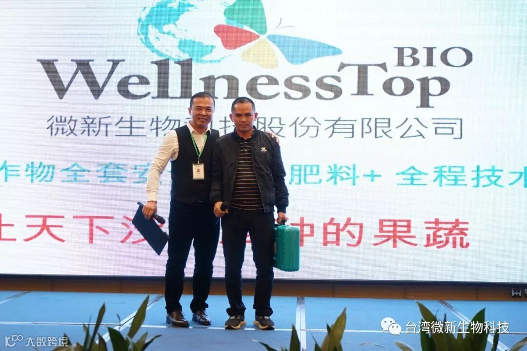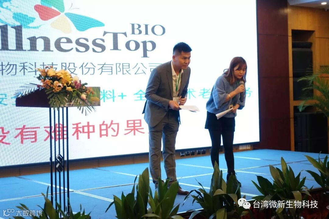 潘老师的感言;我非常的感谢廖涌杰夫妇,对微新生物的支持,他们是我在象州下乡开发市场的第一个客户,打造出来的第一个观摩园,每天在气温高达37~38℃环境下做示范实验,我一吃饱中午饭我就拉廖老板下乡,他都向王总诉苦说:“你的潘总都不给我小眯一会儿就要拉我下乡去了”。廖老板的鞋都被我磨烂了几双,人晒成了别人眼里“你是烧炭的还是出瑶,他的客户都亲切的称呼他为“廖黑子”了,有一次刚下完大雨我们下乡去陆来丰的果园。车差不多到果园时陷进了泥坑,我想一脚油门冲出来,却磨破了轮胎,轮子都漏气完了,当你看到我的一脸的沮丧,你对我说,潘总不急这个我来弄,在这个烂泥坑里,你三下两下就把车轮换好,还有很多让我很感动的事迹太多了,让我今天在台上无叙说太多,你看巫蒙燕女士从一个只是从只坐店的老娘,来了一个人生的180度大转弯变成了早出晚归,风里来雨里去的为果农把关守护的植物医生,借这次机会向廖涌杰先生跟巫蒙燕女士深深的表达我的感谢。
