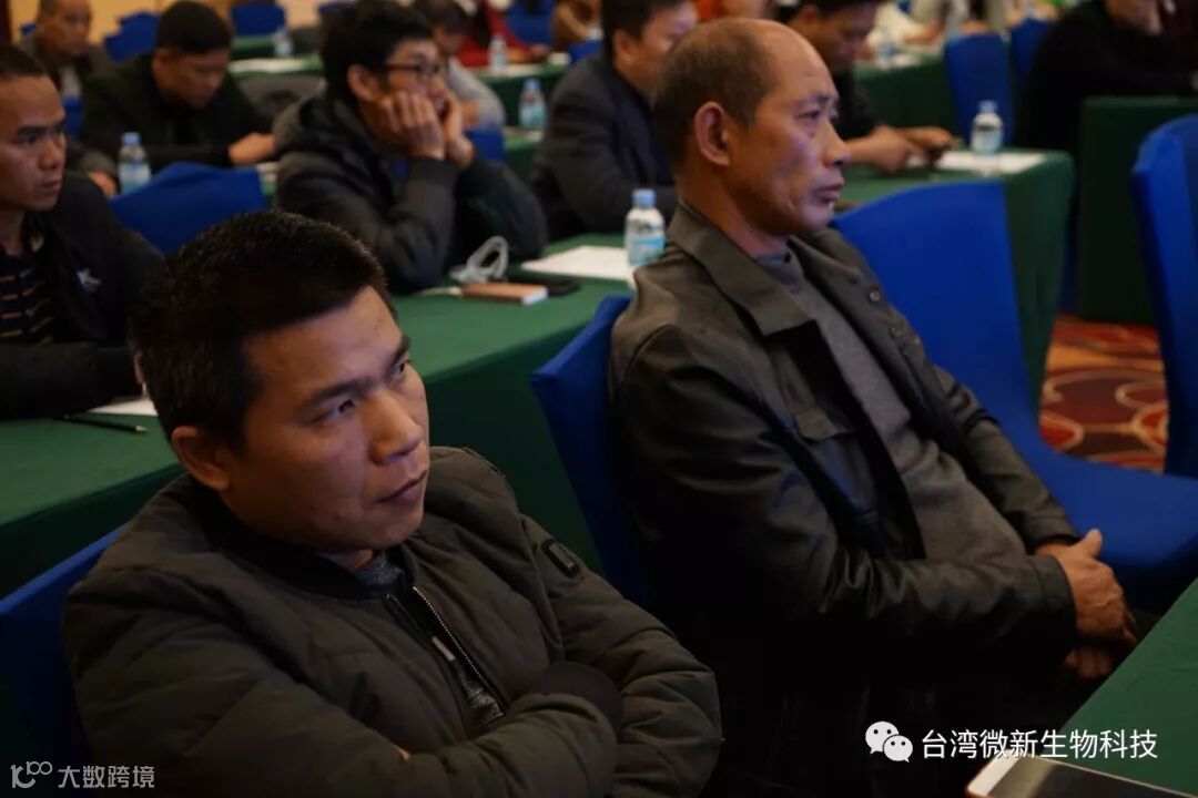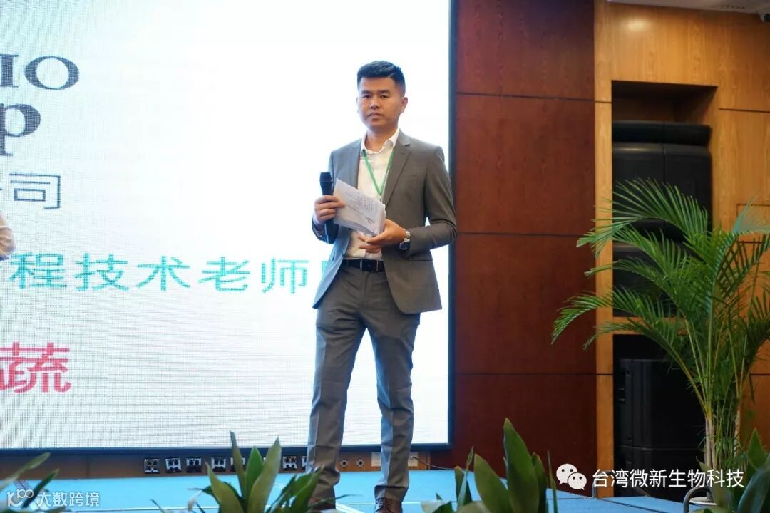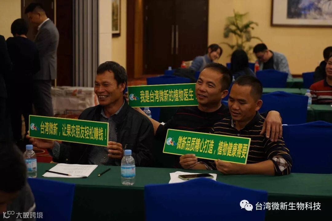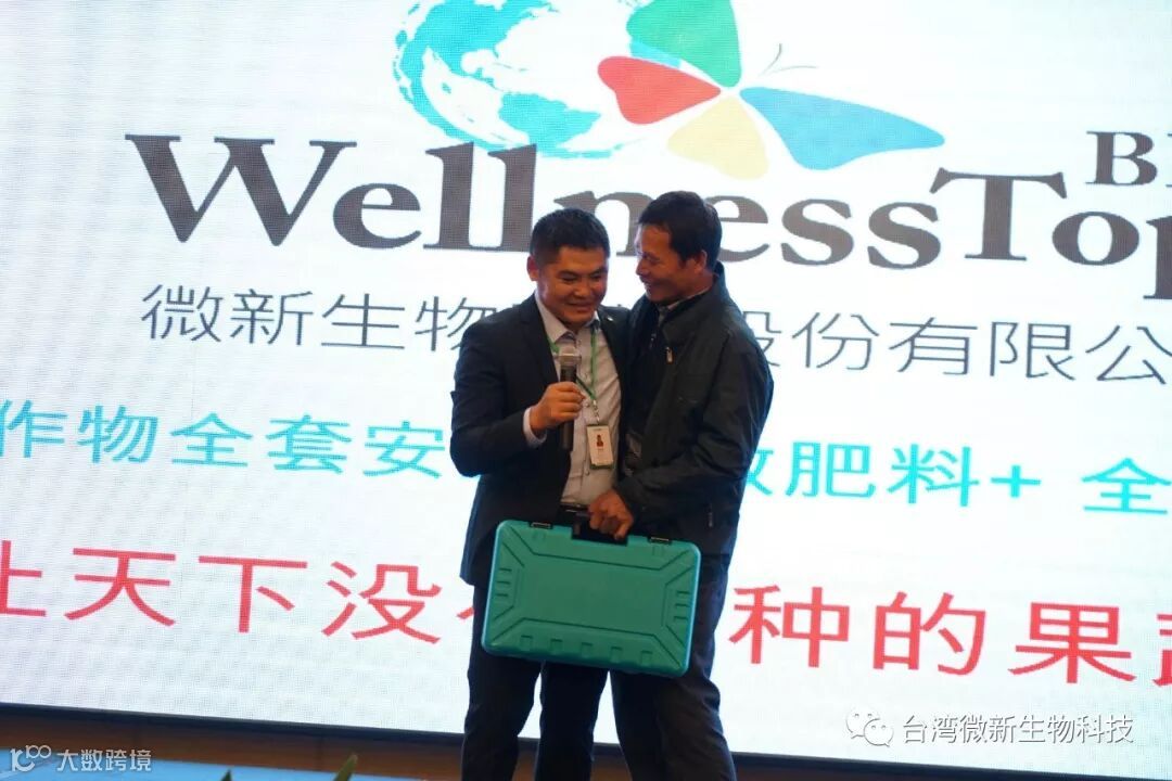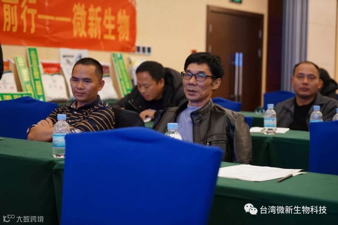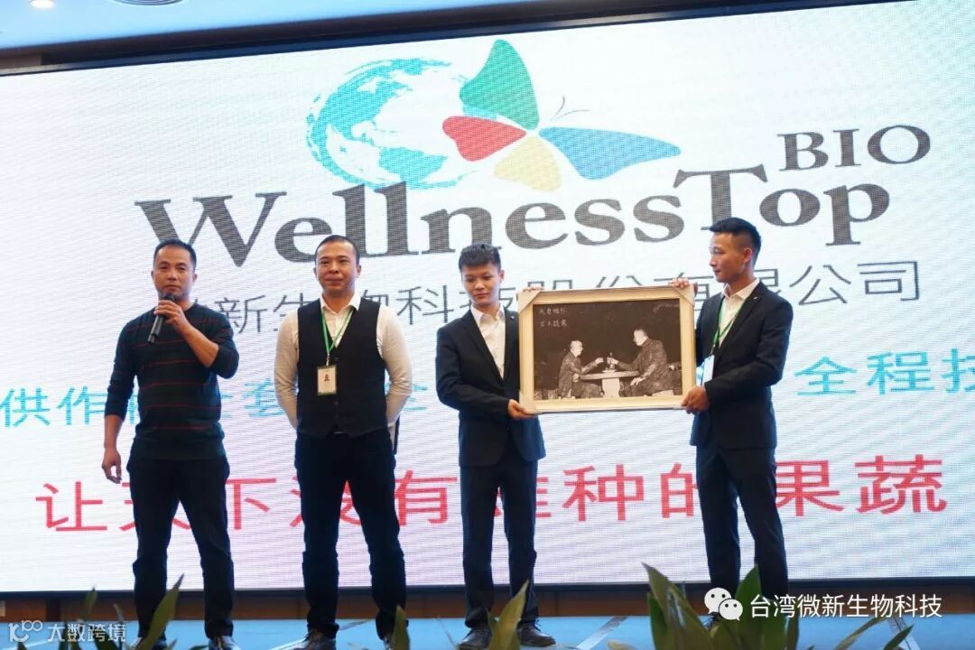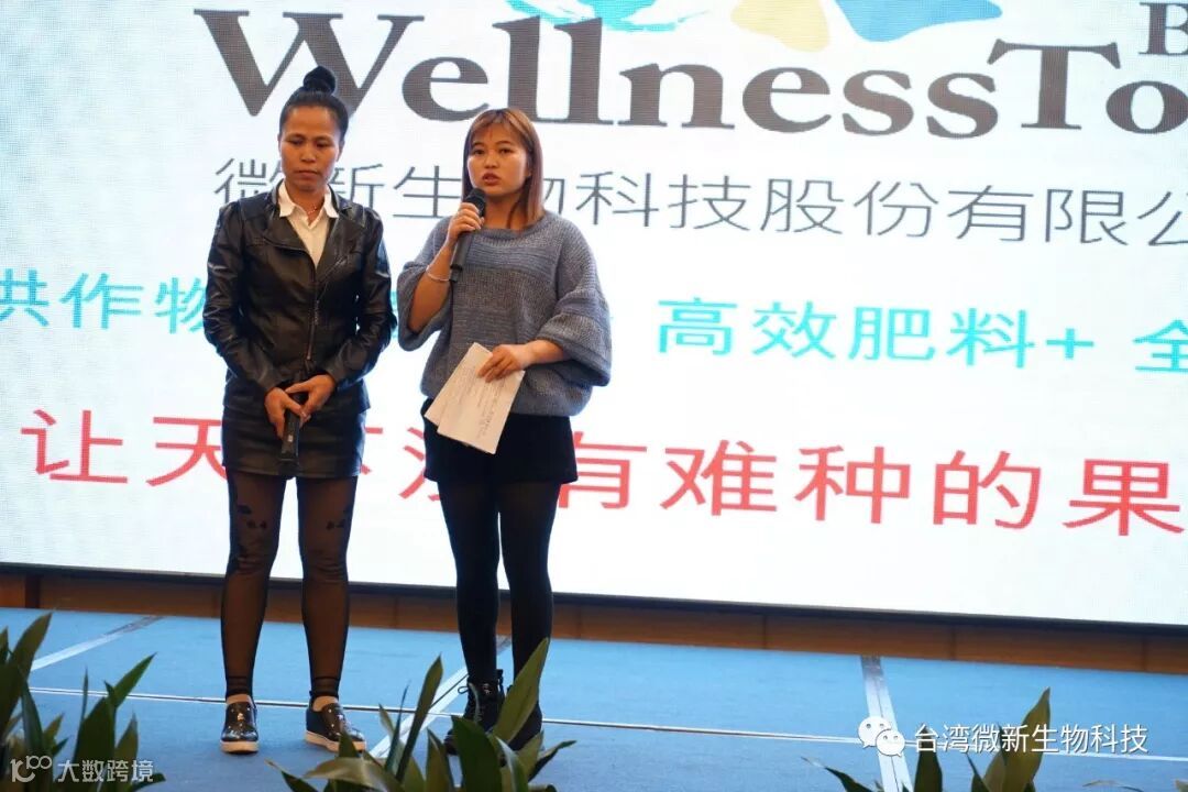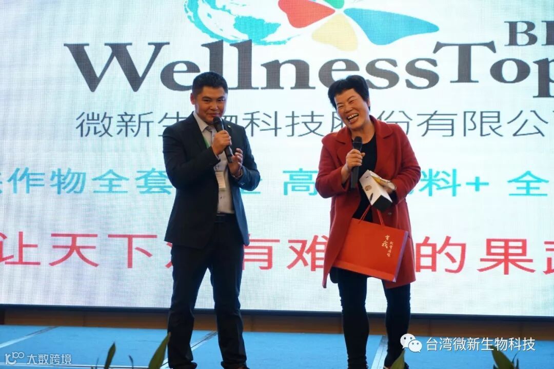 潘老师的感言;我非常的感谢廖涌杰夫妇,对微新生物的支持,他们是我在象州下乡开发市场的第一个客户,打造出来的第一个观摩园,每天在气温高达37~38℃环境下做示范实验,我一吃饱中午饭我就拉廖老板下乡,他都向王总诉苦说:“你的潘总都不给我小眯一会儿就要拉我下乡去了”。廖老板的鞋都被我磨烂了几双,人晒成了别人眼里“你是烧炭的还是出瑶,他的客户都亲切的称呼他为“廖黑子”了,有一次刚下完大雨我们下乡去陆来丰的果园。车差不多到果园时陷进了泥坑,我想一脚油门冲出来,却磨破了轮胎,轮子都漏气完了,当你看到我的一脸的沮丧,你对我说,潘总不急这个我来弄,在这个烂泥坑里,你三下两下就把车轮换好,还有很多让我很感动的事迹太多了,让我今天在台上无叙说太多,你看巫蒙燕女士从一个只是从只坐店的老娘,来了一个人生的180度大转弯变成了早出晚归,风里来雨里去的为果农把关守护的植物医生,借这次机会向廖涌杰先生跟巫蒙燕女士深深的表达我的感谢。