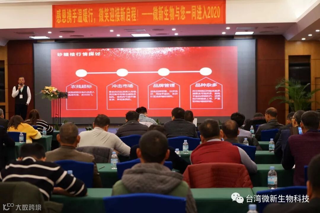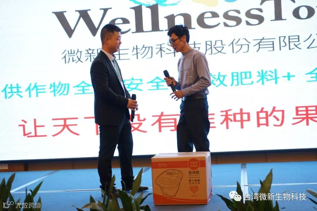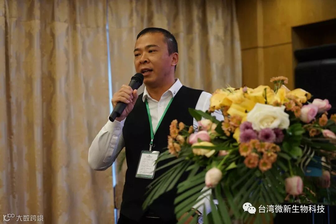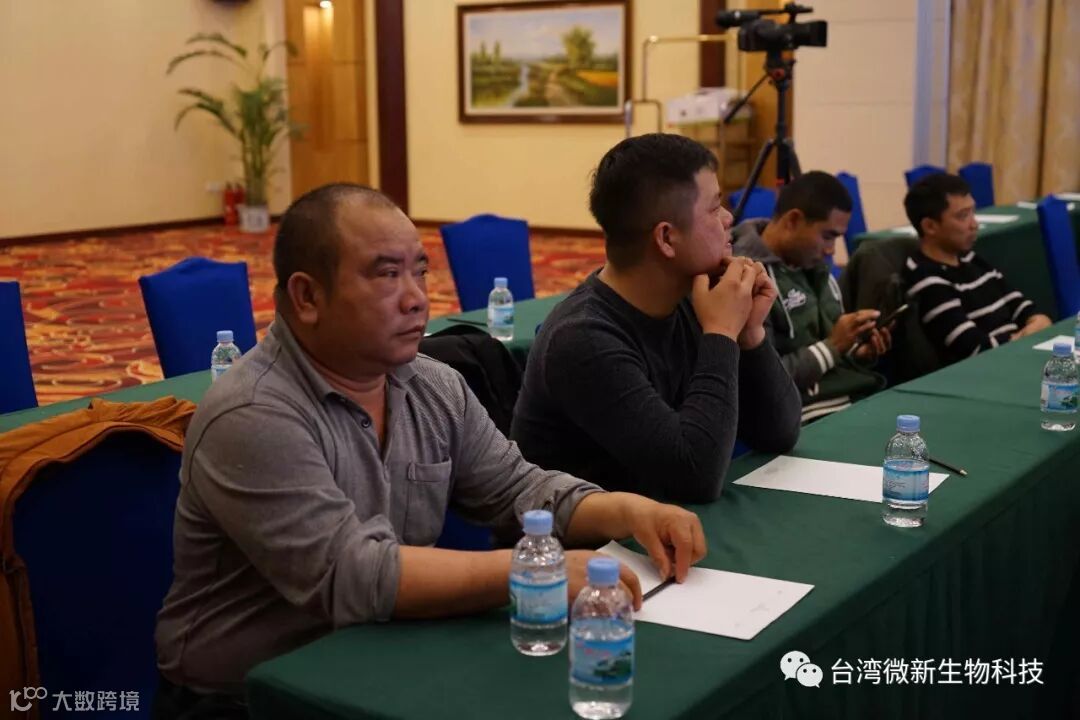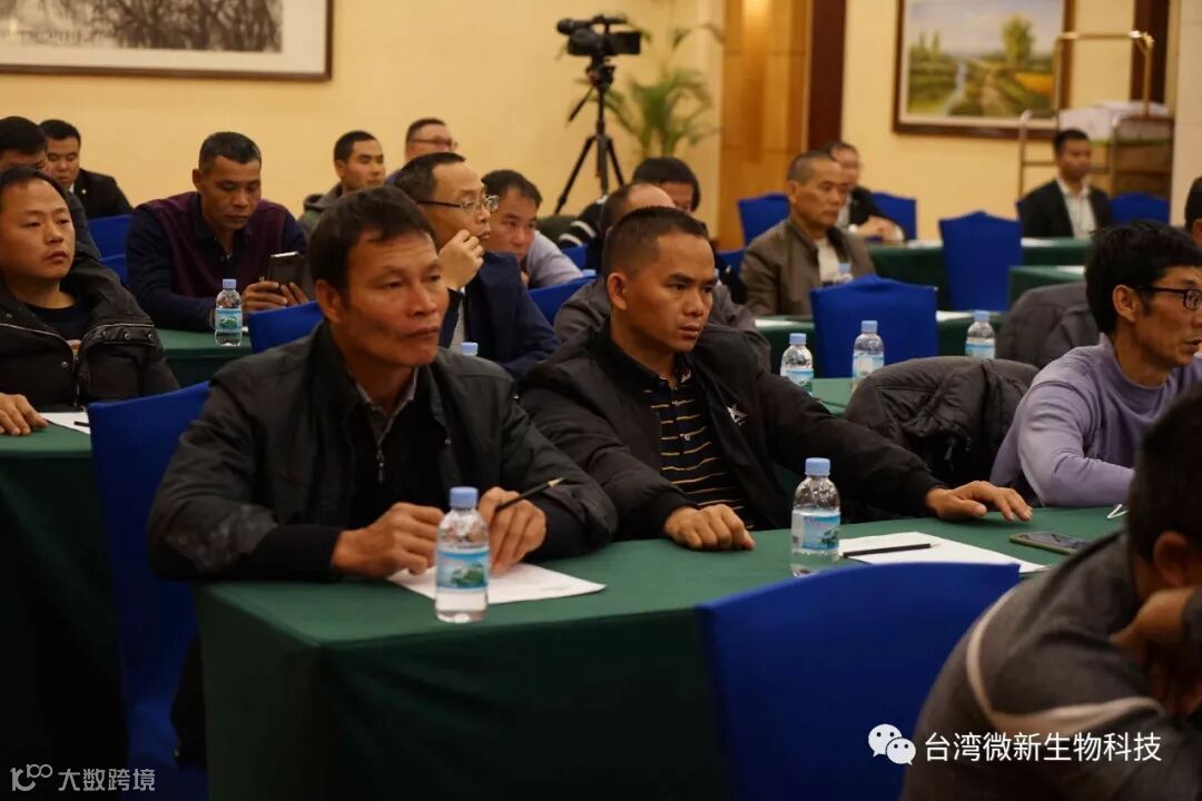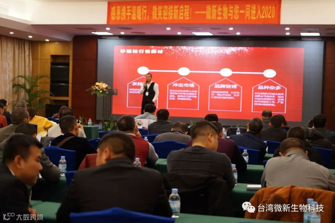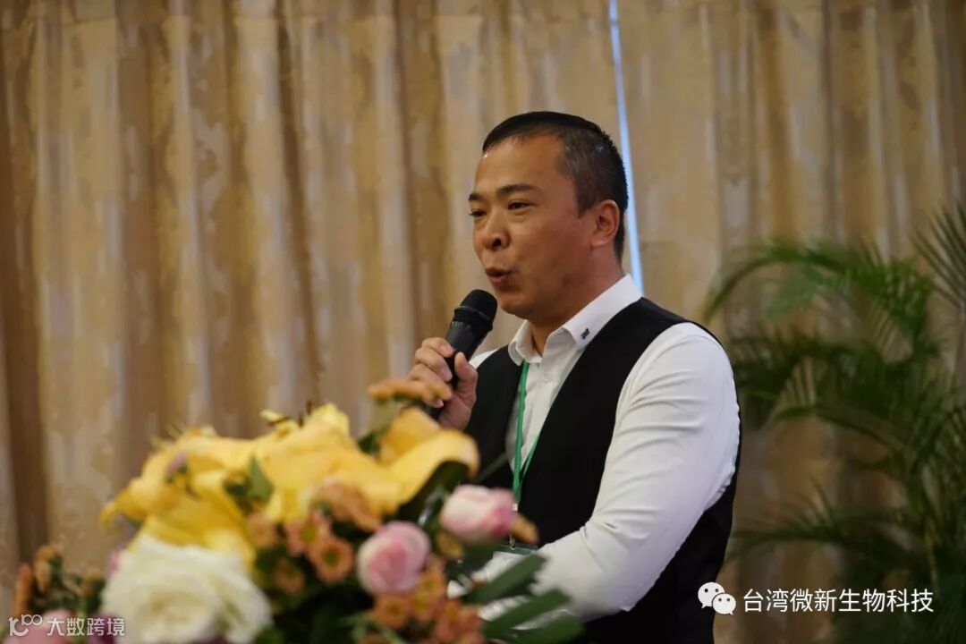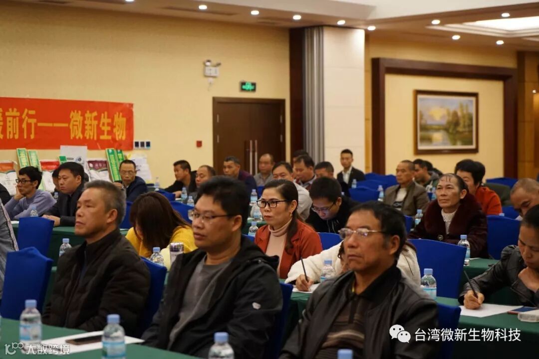 潘老师的感言;我非常的感谢廖涌杰夫妇,对微新生物的支持,他们是我在象州下乡开发市场的第一个客户,打造出来的第一个观摩园,每天在气温高达37~38℃环境下做示范实验,我一吃饱中午饭我就拉廖老板下乡,他都向王总诉苦说:“你的潘总都不给我小眯一会儿就要拉我下乡去了”。廖老板的鞋都被我磨烂了几双,人晒成了别人眼里“你是烧炭的还是出瑶,他的客户都亲切的称呼他为“廖黑子”了,有一次刚下完大雨我们下乡去陆来丰的果园。车差不多到果园时陷进了泥坑,我想一脚油门冲出来,却磨破了轮胎,轮子都漏气完了,当你看到我的一脸的沮丧,你对我说,潘总不急这个我来弄,在这个烂泥坑里,你三下两下就把车轮换好,还有很多让我很感动的事迹太多了,让我今天在台上无叙说太多,你看巫蒙燕女士从一个只是从只坐店的老娘,来了一个人生的180度大转弯变成了早出晚归,风里来雨里去的为果农把关守护的植物医生,借这次机会向廖涌杰先生跟巫蒙燕女士深深的表达我的感谢。