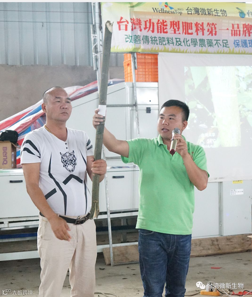 台湾共享王总向大家介绍了公司 (专业并专注植物营养30余年,台湾功能型肥料第一品牌并于台湾上市)及公司核心(产品技术研发及微生物技术专利) 及我们来的目的(提供柑橘全程技术管理方案 及如何落地!并展示了我们的解决方案及成果)