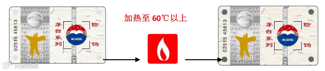 四个角上的圆点在加热至 60℃以上后图案呈现黑色,并且不可恢复。