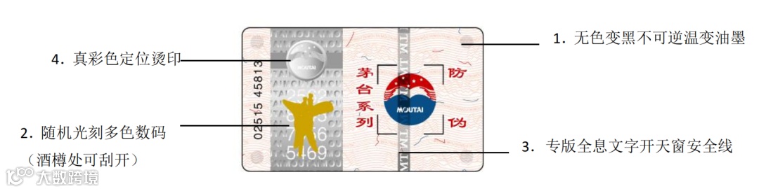 2009年2月下旬,飞天茅台酒开始在瓶盖上使用防伪胶帽,该防伪胶帽采用如下识别方式: