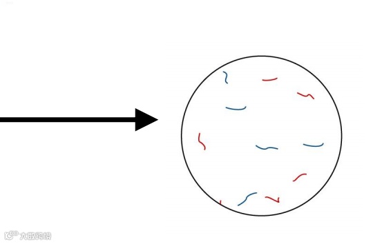 肉眼观察可见红、蓝色纤维丝,在荧光灯下红色纤维丝变为亮红色,蓝色纤维丝变为亮蓝色。
