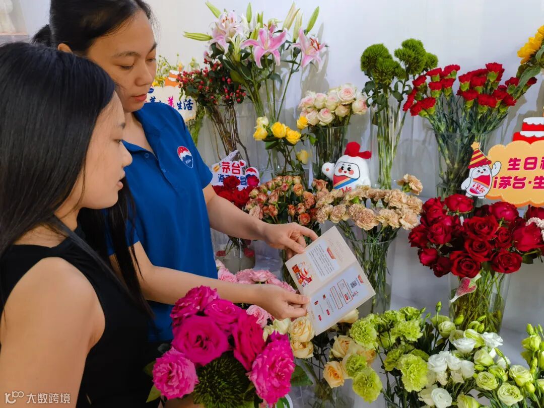 以花为伴,以酒为礼。鲜花与美酒的奇妙相遇,视觉与味觉共赴一场春日盛会。精巧可爱的礼盒小酒在簇簇花团中更显亮眼,吸引客户驻足而观。
